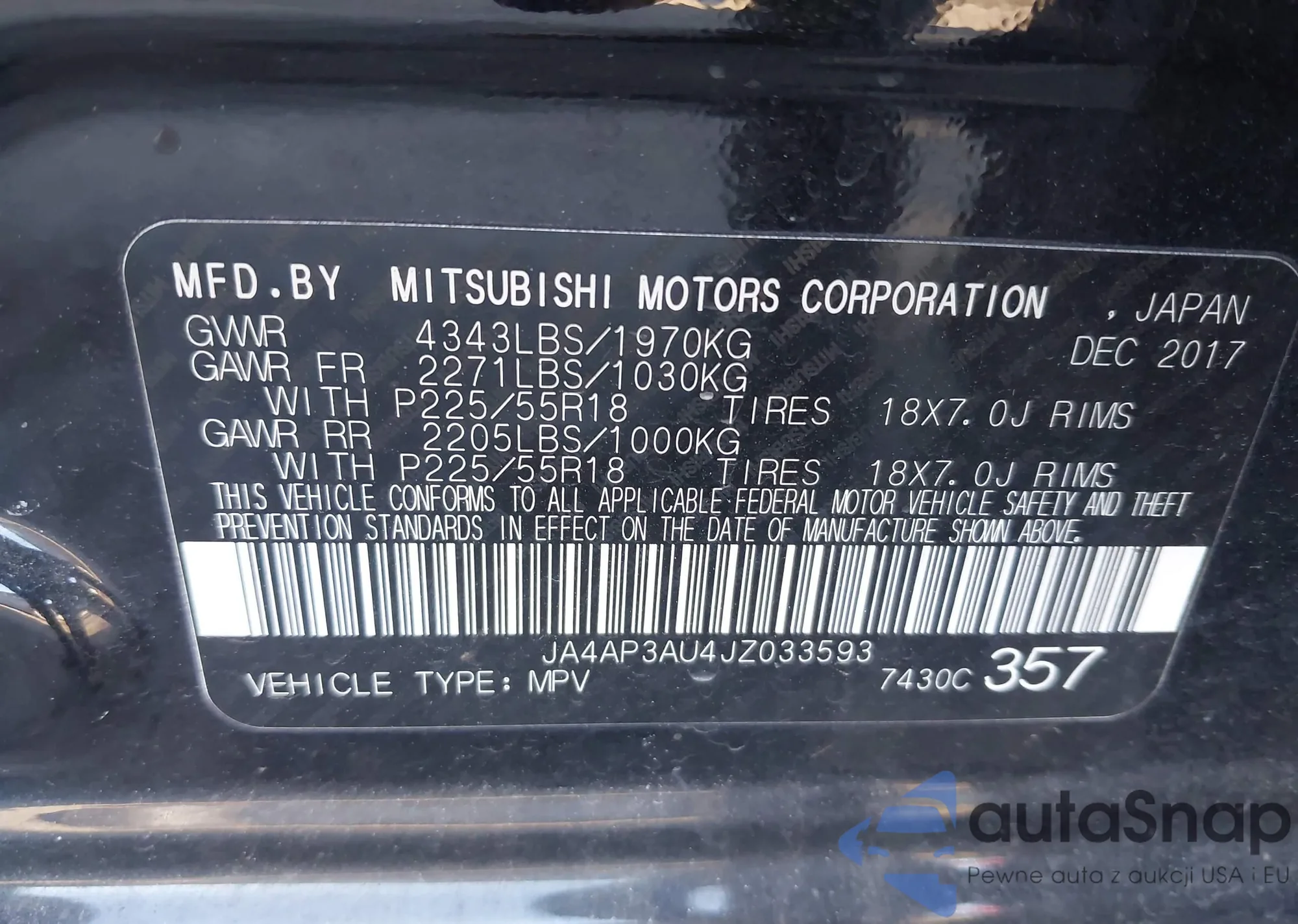 LOT: 44317768 VIN: JA4AP3AU4JZ033593