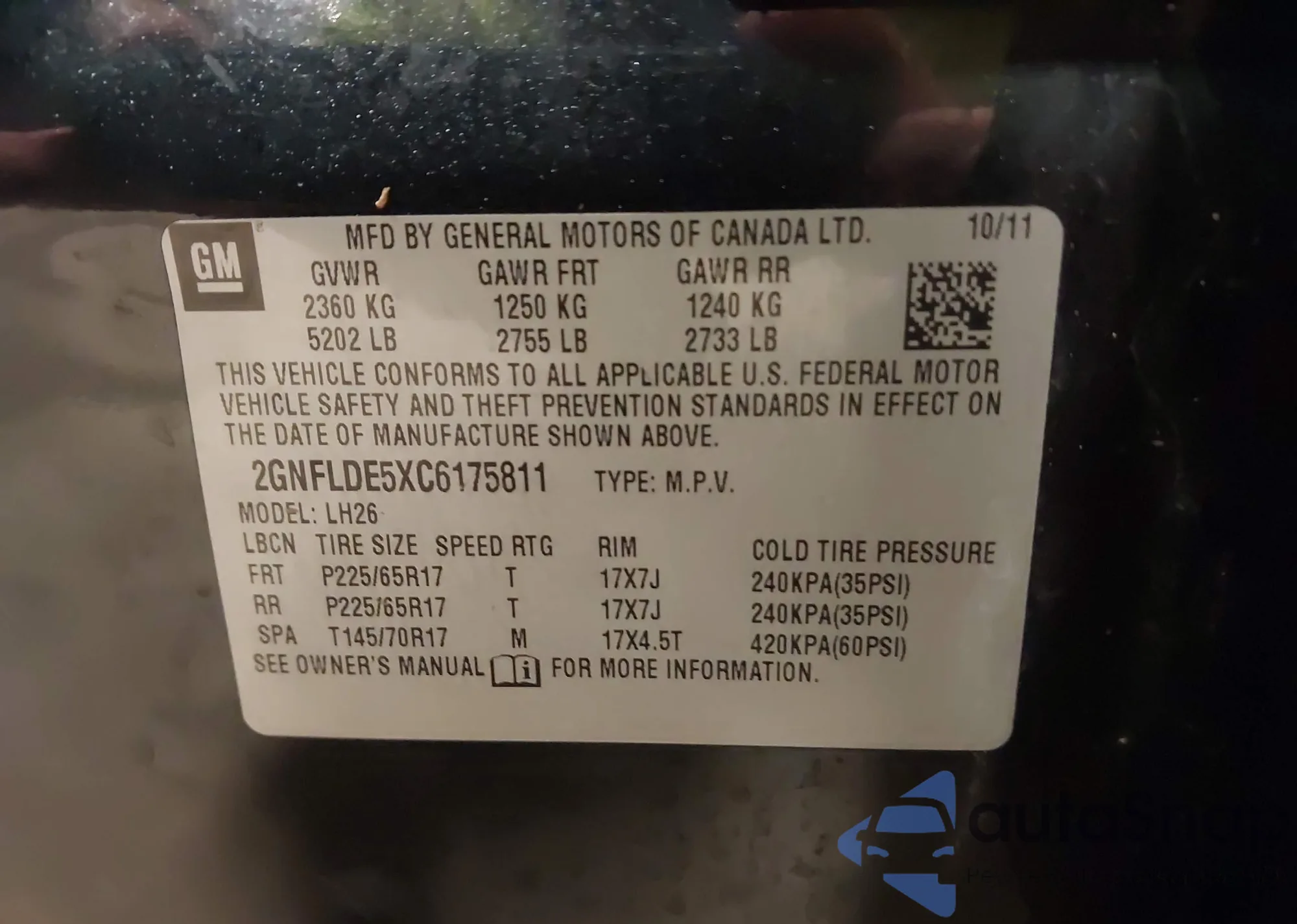 • VIN 2GNFLDE5XC6175811