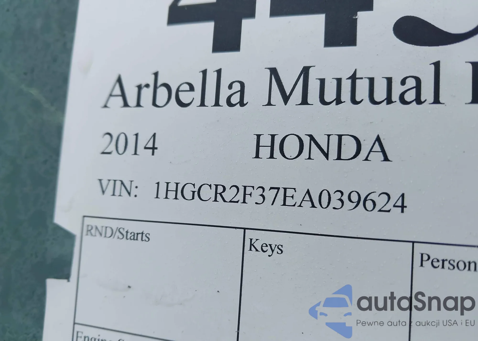 LOT: 44523889 VIN: 1HGCR2F37EA039624