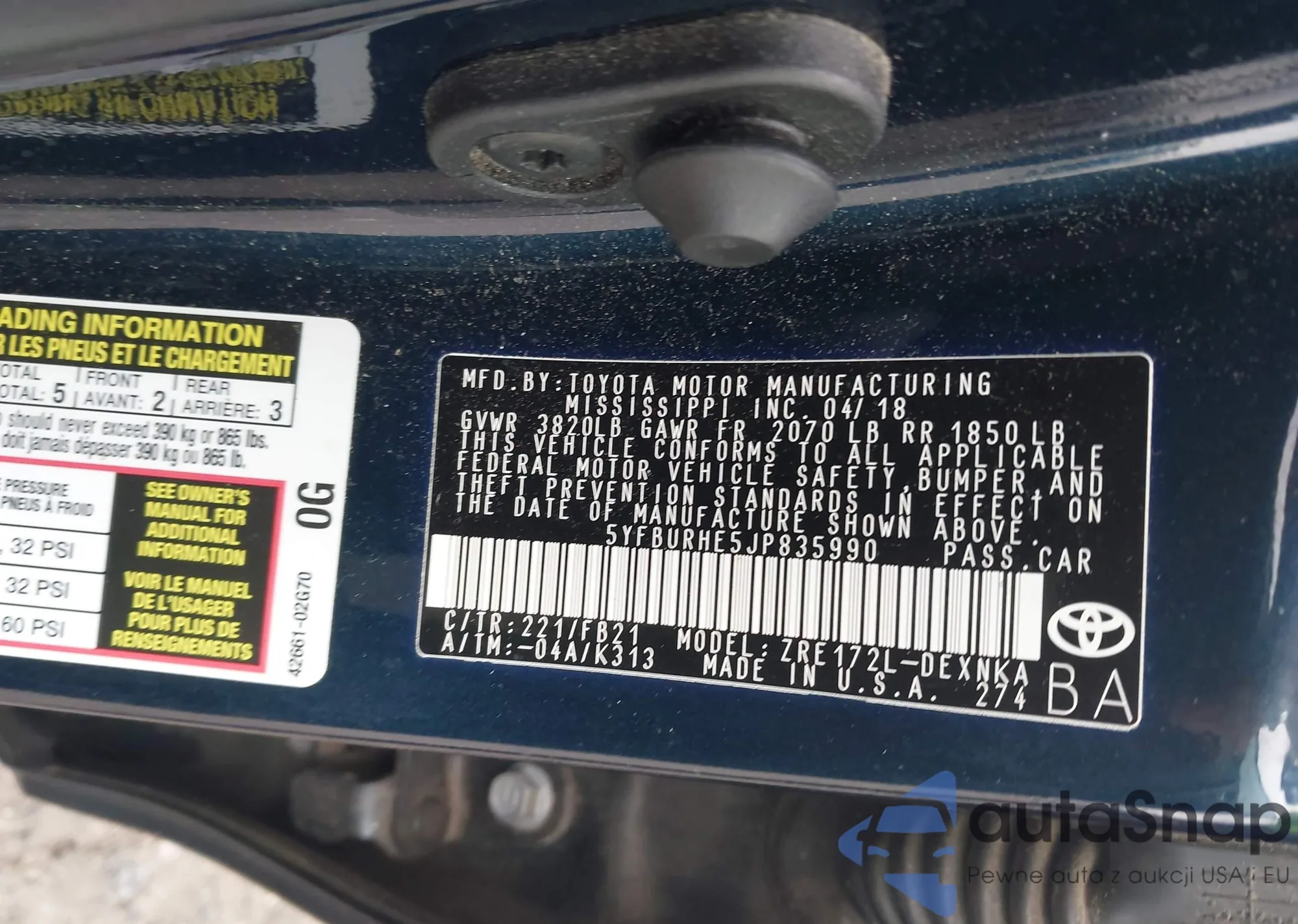 • VIN 5YFBURHE5JP835990