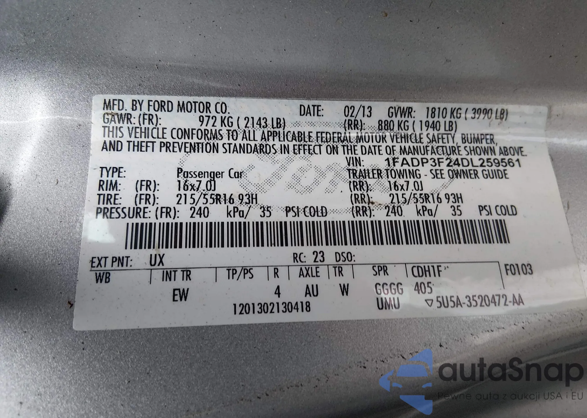 LOT: 44474657 VIN: 1FADP3F24DL259561