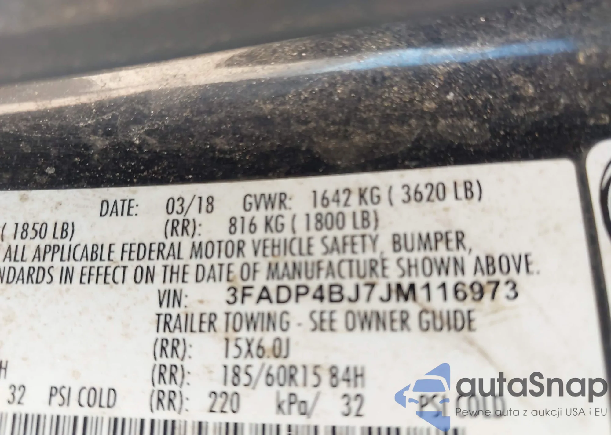 • VIN 3FADP4BJ7JM116973
