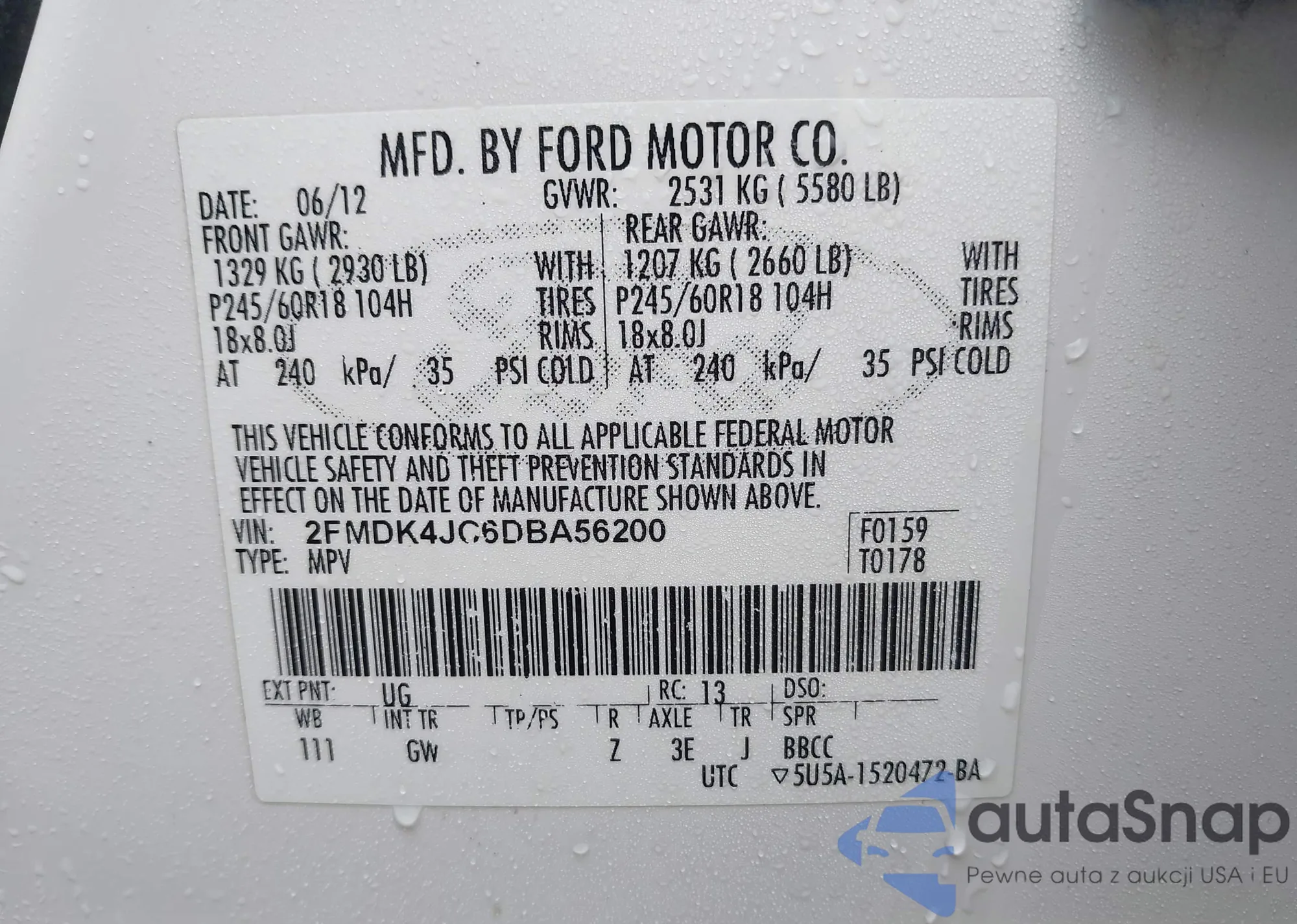 LOT: 44585071 VIN: 2FMDK4JC6DBA56200