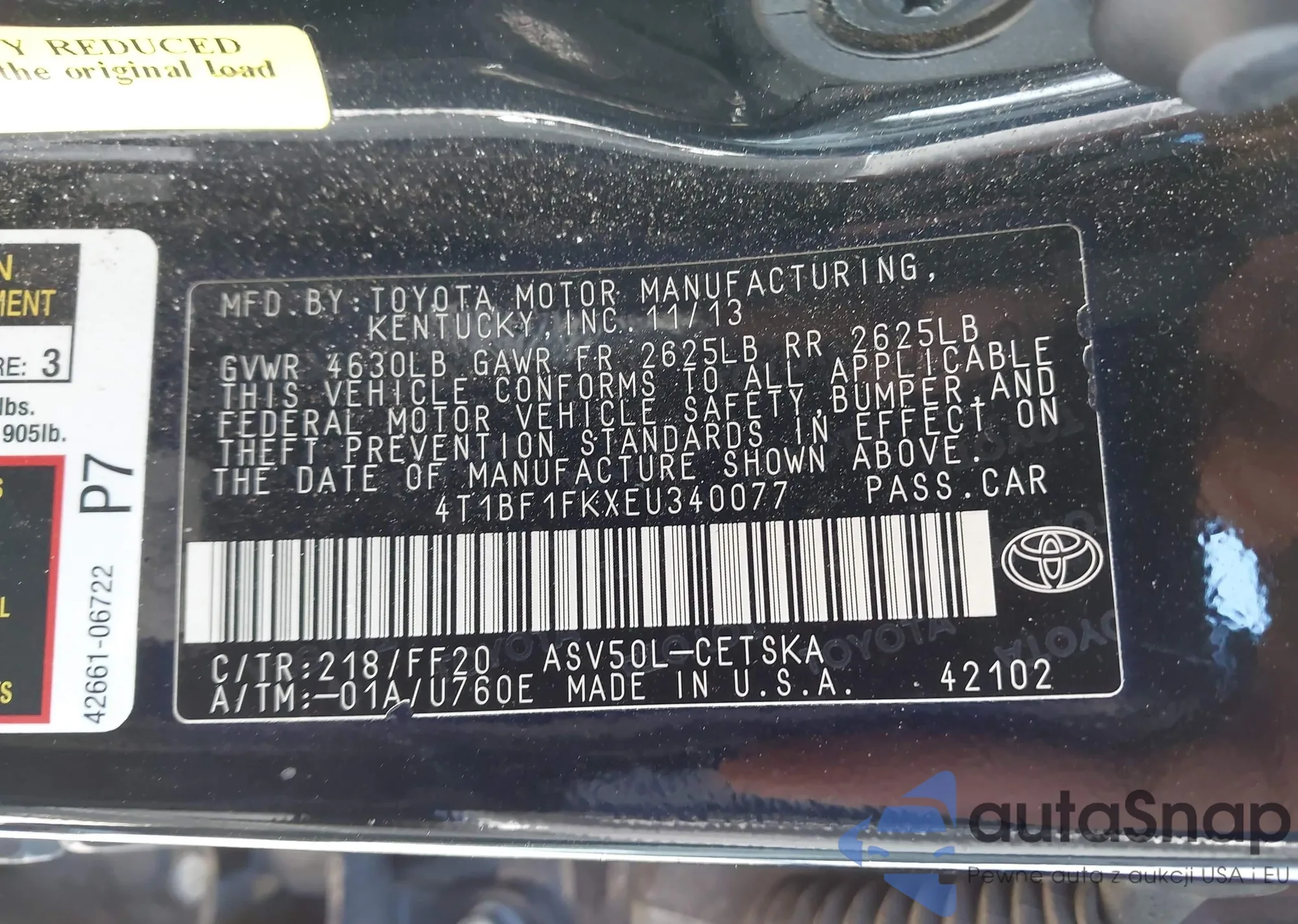LOT: 44153566 VIN: 4T1BF1FKXEU340077