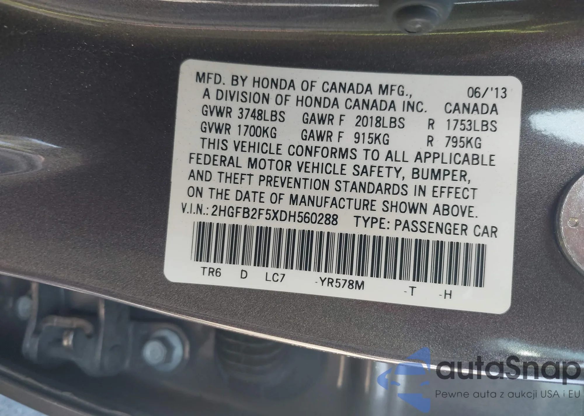 LOT: 44260860 VIN: 1HGCP26839A075057