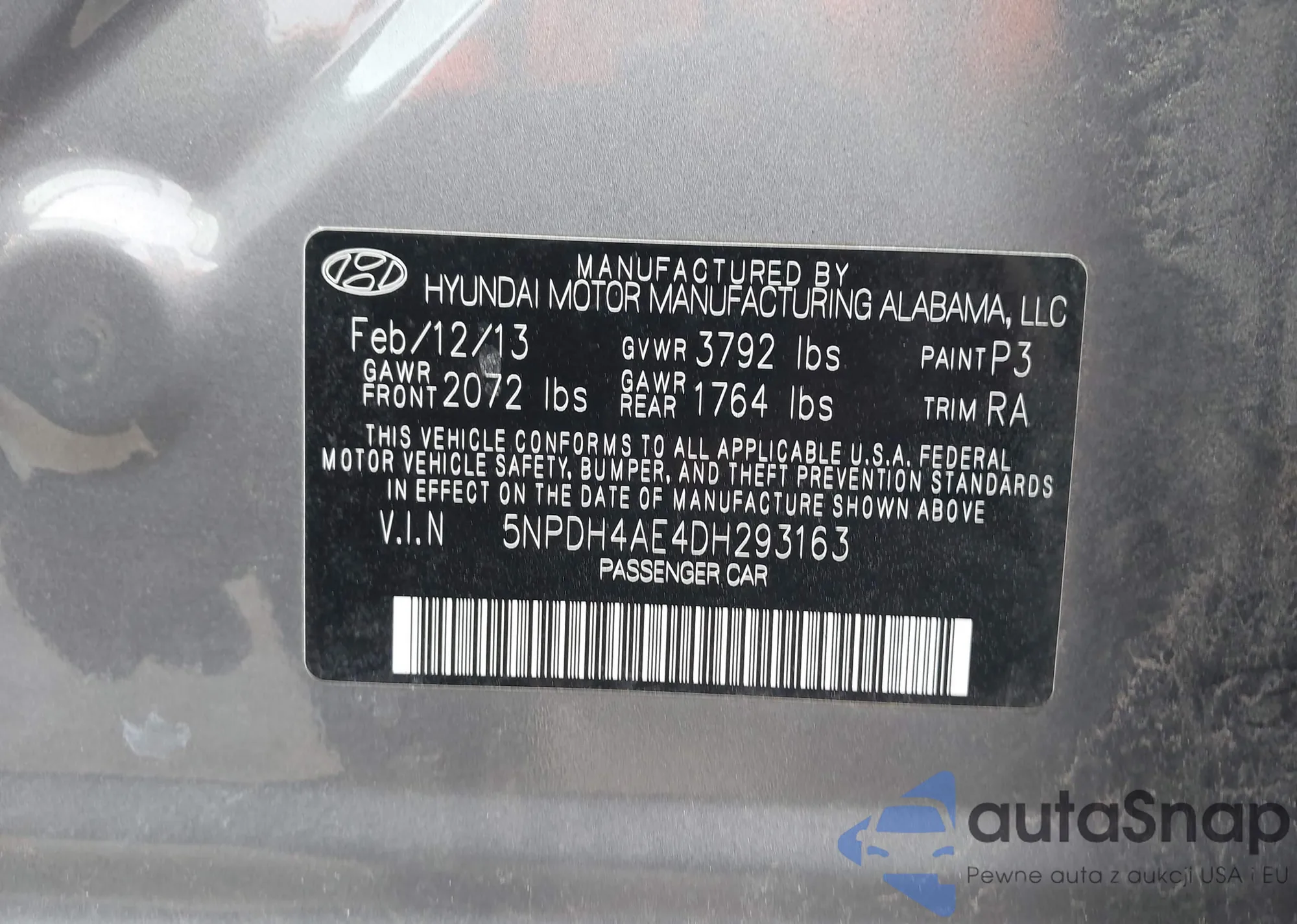 • VIN 5NPDH4AE4DH293163