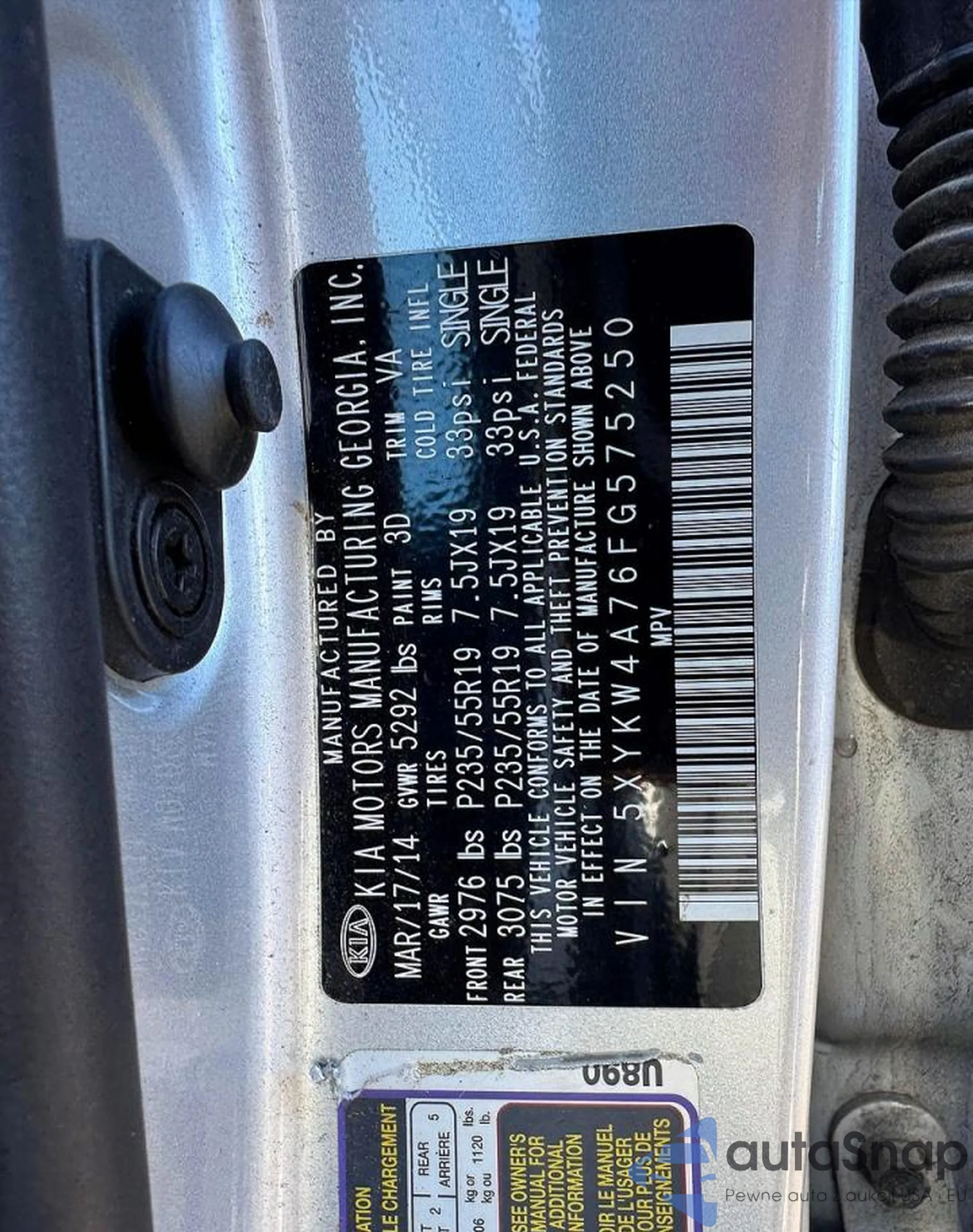 • VIN 5XYKW4A76FG575250
