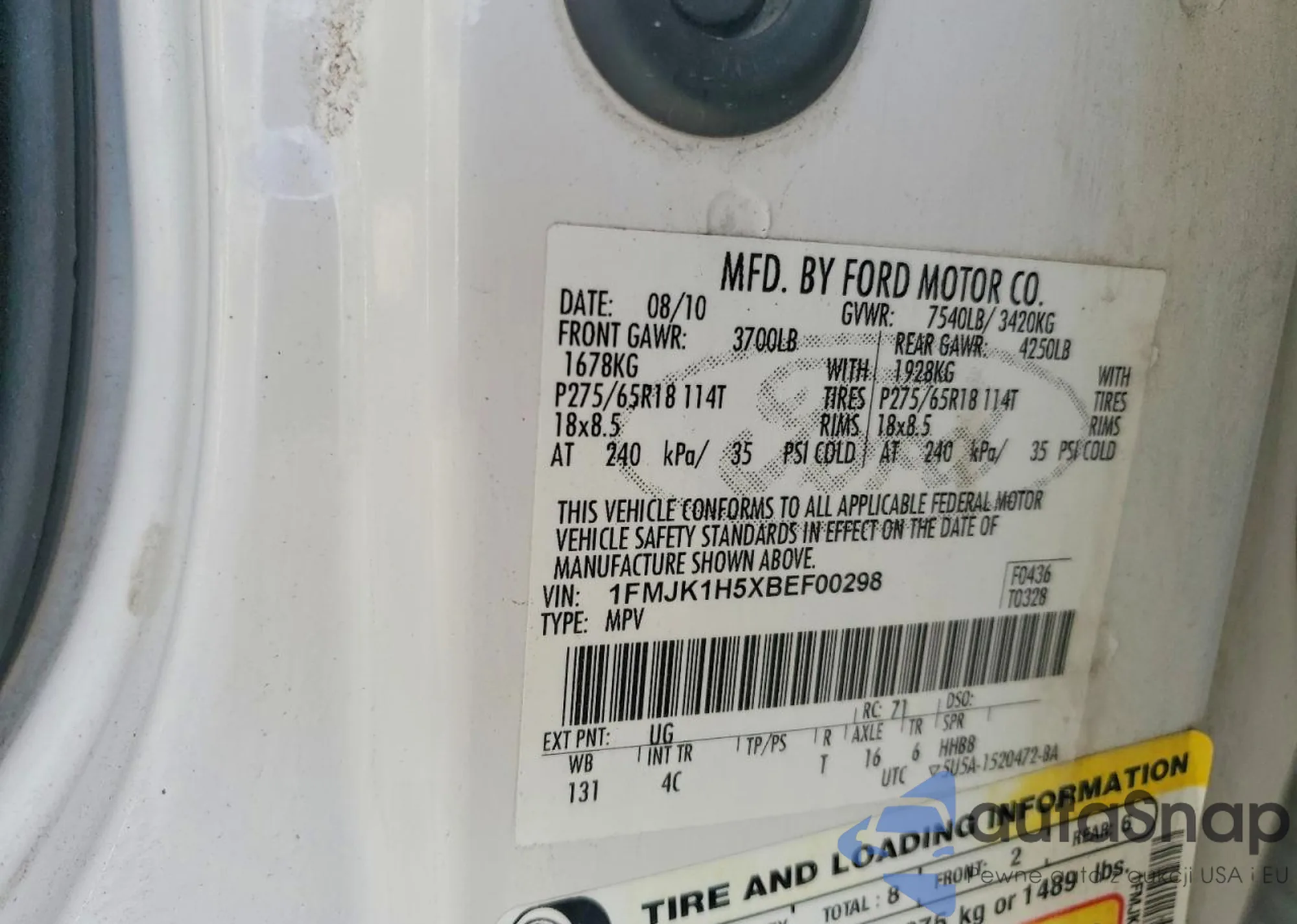 LOT: 78591605 VIN: 1FMJK1H5XBEF00298
