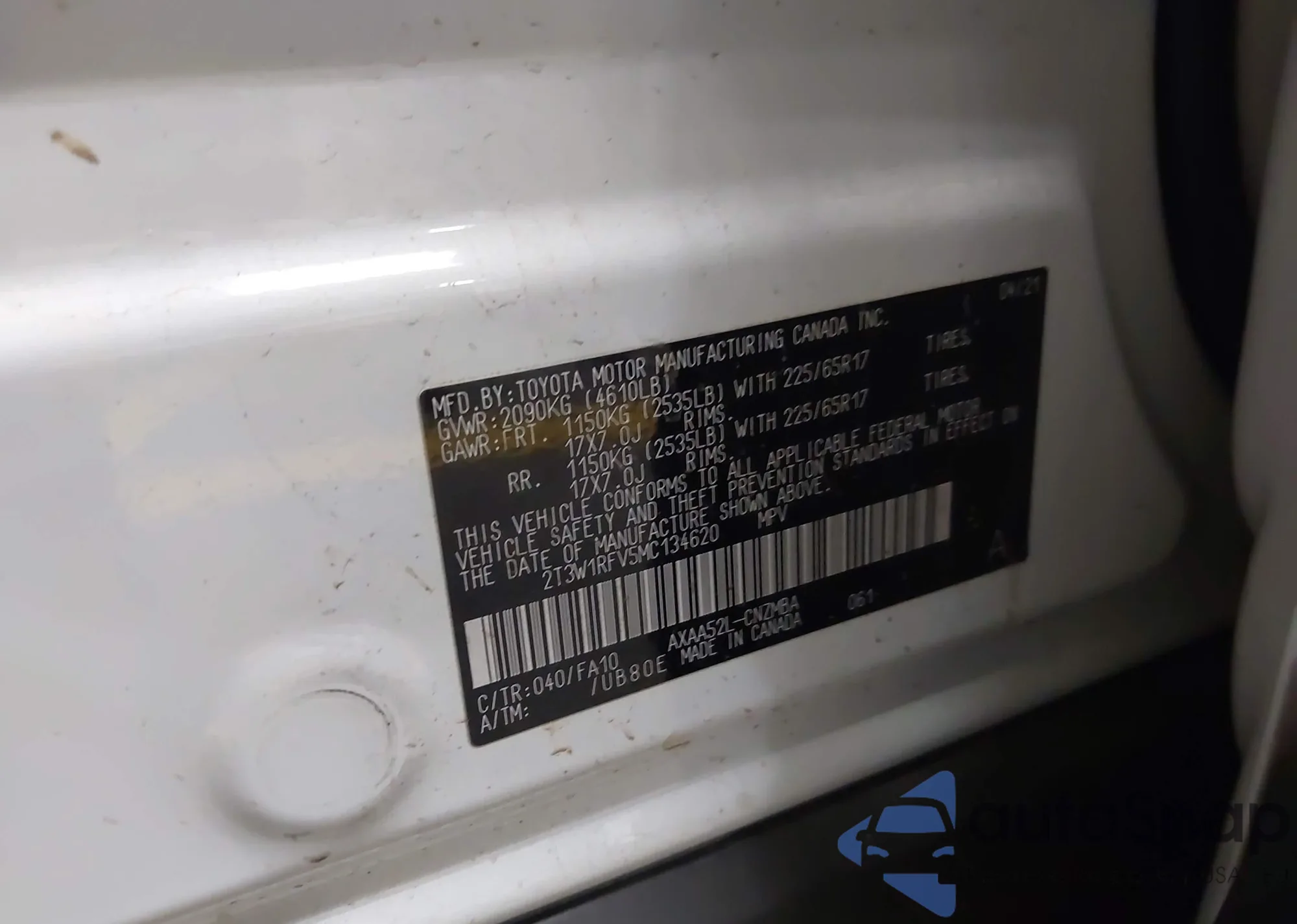 LOT: 44598533 VIN: 2T3W1RFV5MC134620