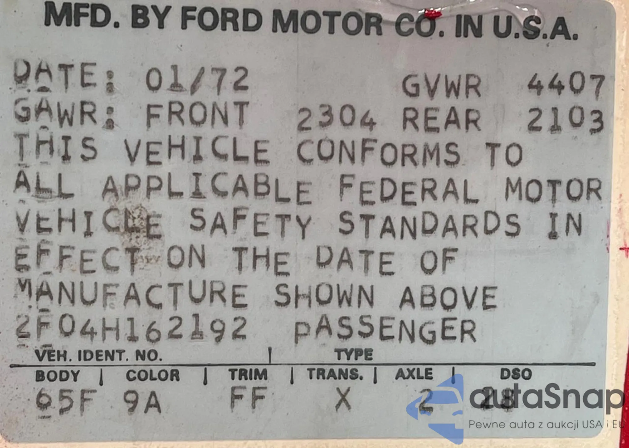 VIN: 2F04H162192