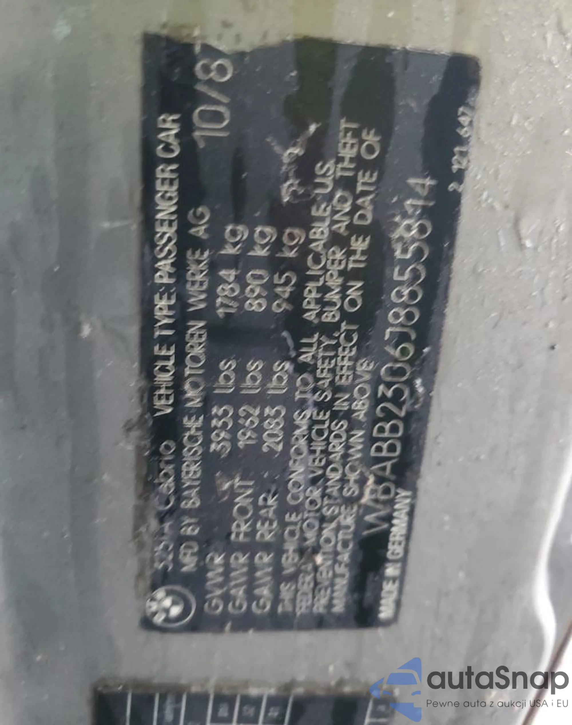 The car BMW 3er 1988 (VIN WBABB2306J8855814) has documents that prevent registration. Export and registration may be difficult. Contact AutaSnap experts to find alternatives.