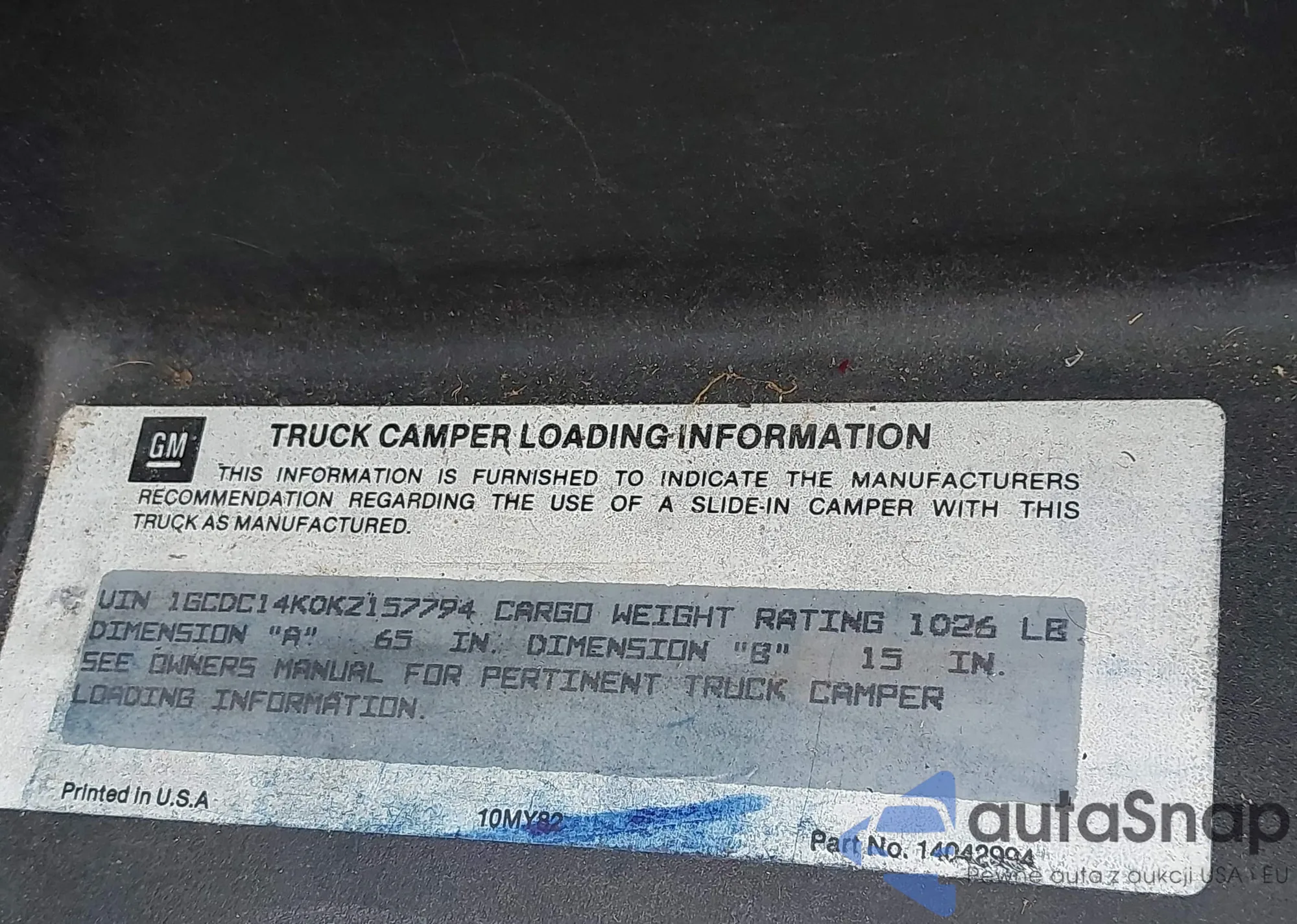 VIN: 1GCDC14K0KZ157794