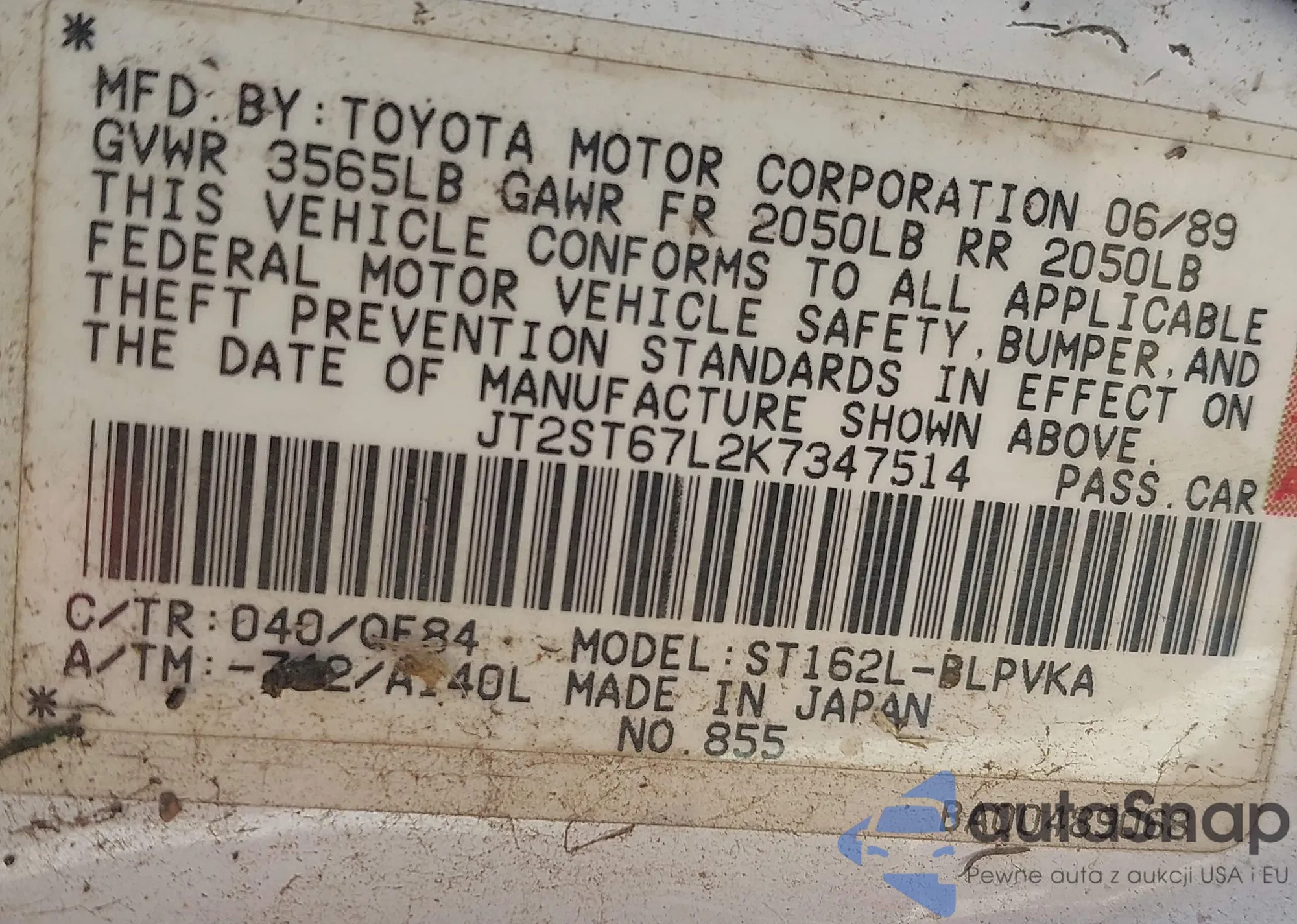 VIN: JT2ST67L2K7347514