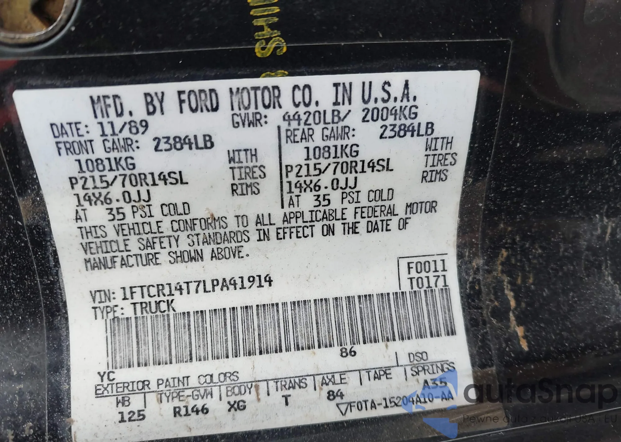 VIN: 1FTCR14T7LPA41914
