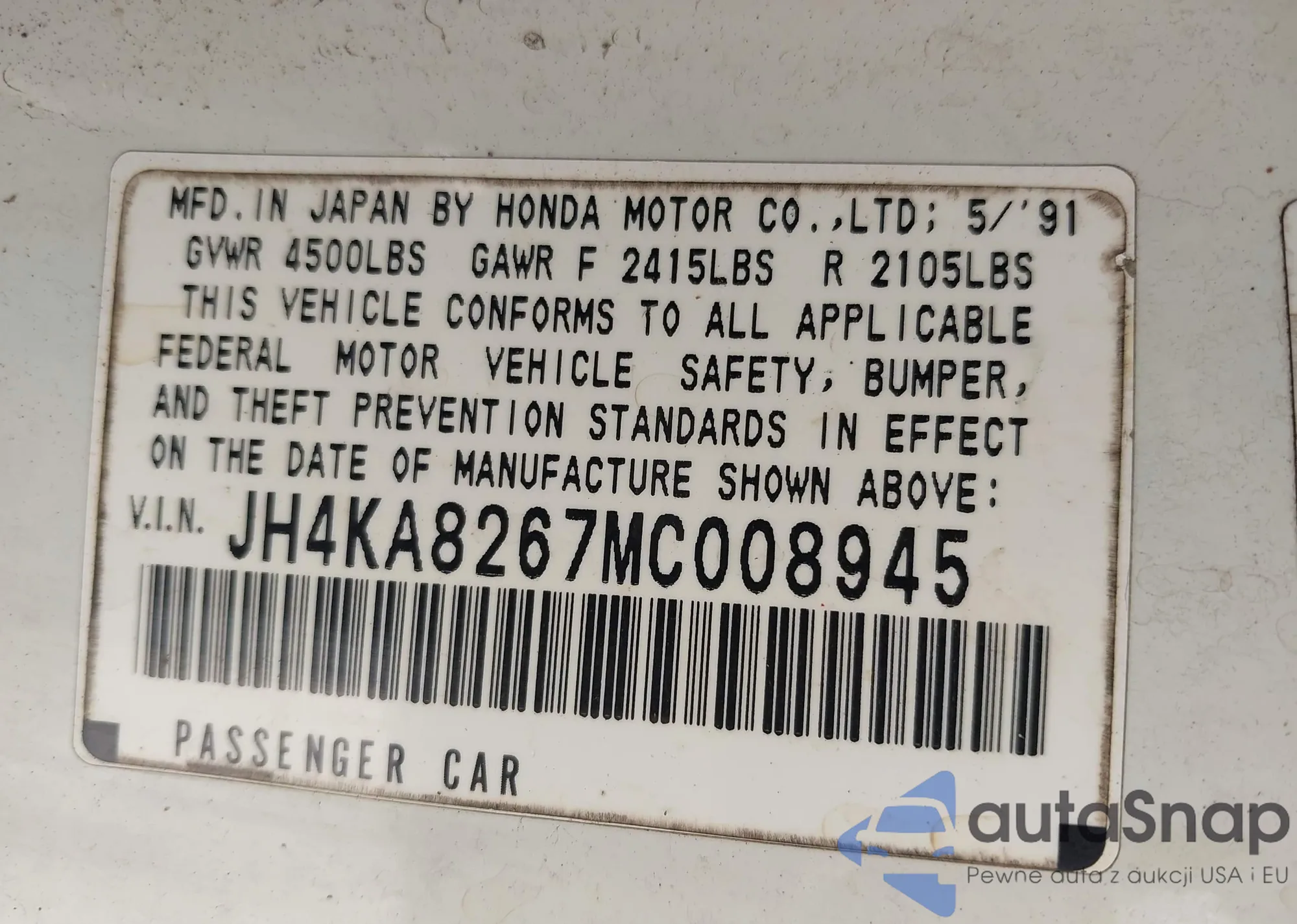 VIN: JH4KA8267MC008945