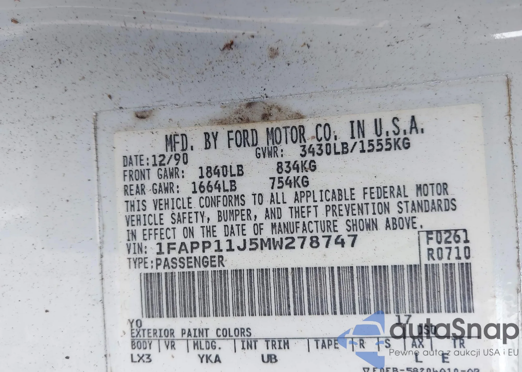 VIN: 1FAPP11J5MW278747