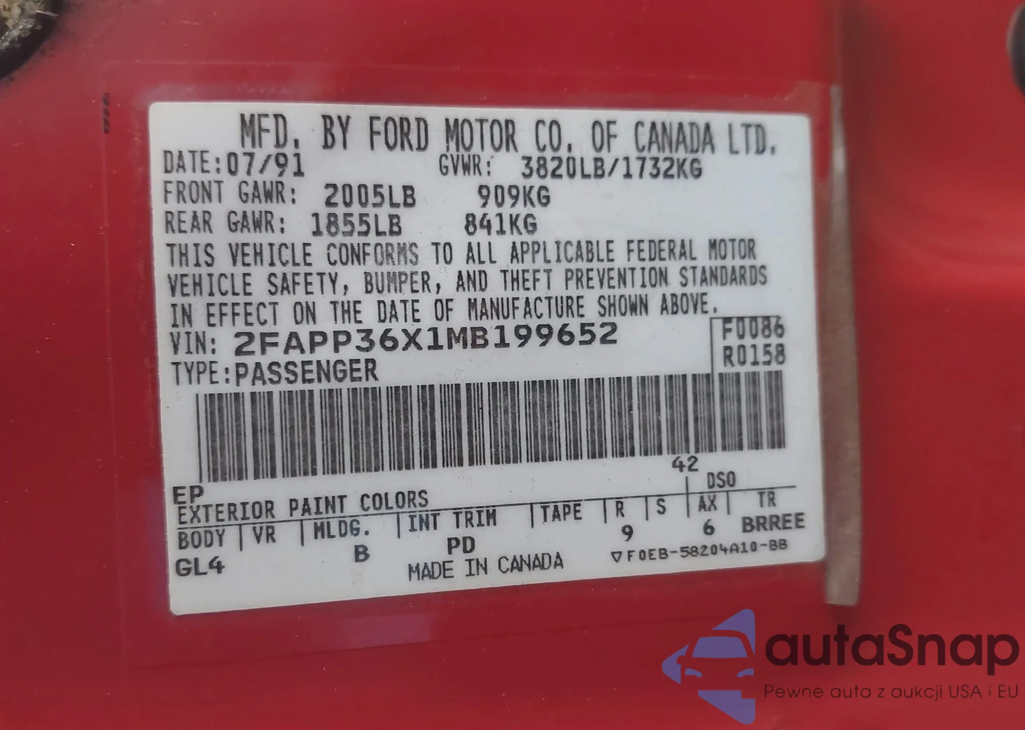 VIN: 2FAPP36X1MB199652