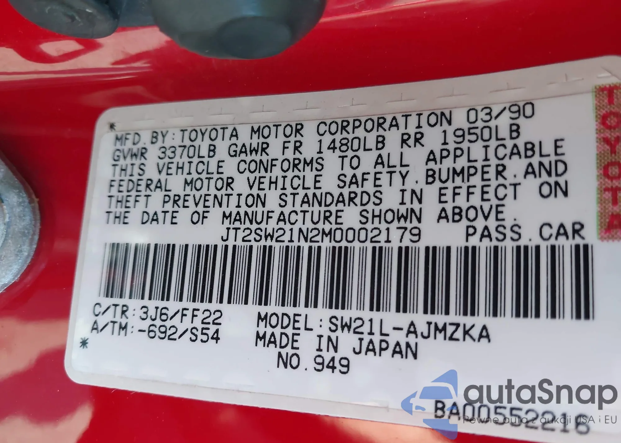 VIN: JT2SW21N2M0002179