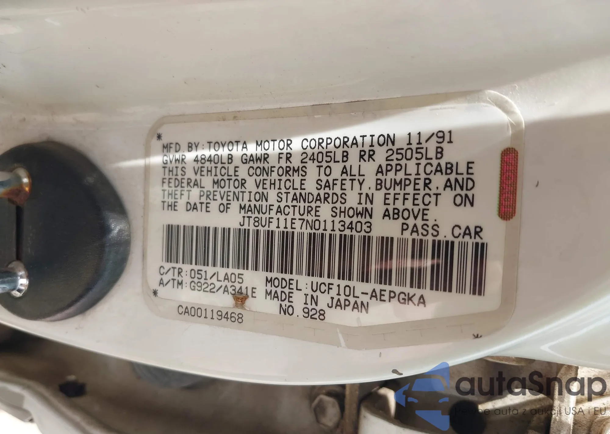 VIN: JT8UF11E7N0113403