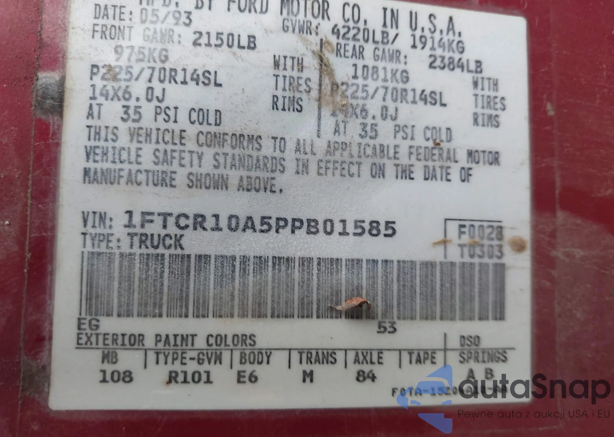 VIN: 1FTCR10A5PPB01585
