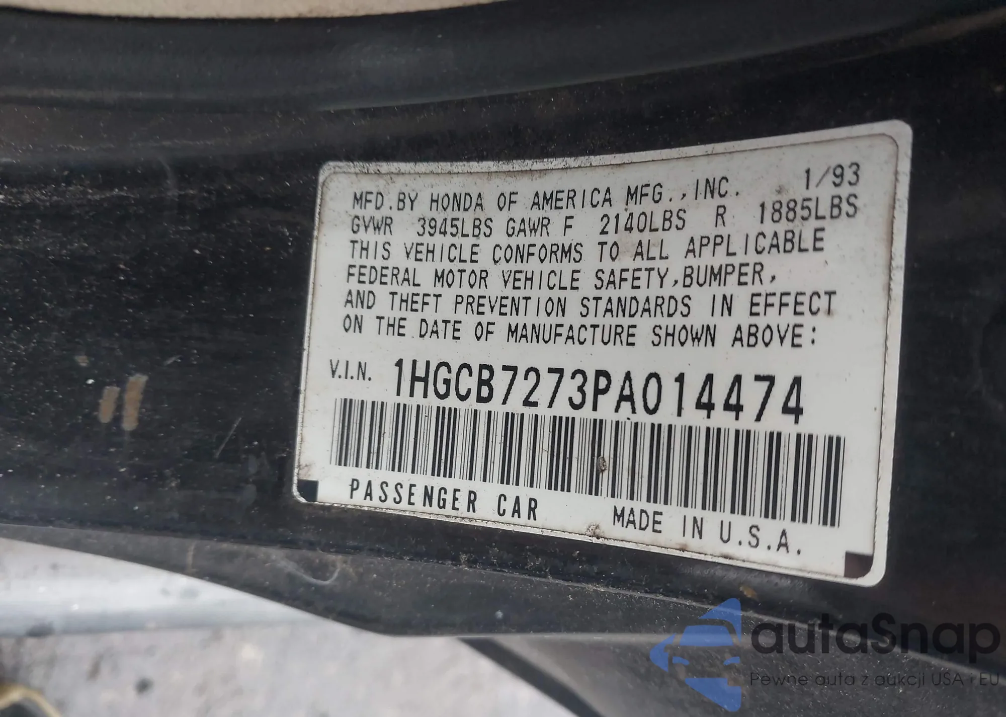 VIN: 1HGCB7273PA014474