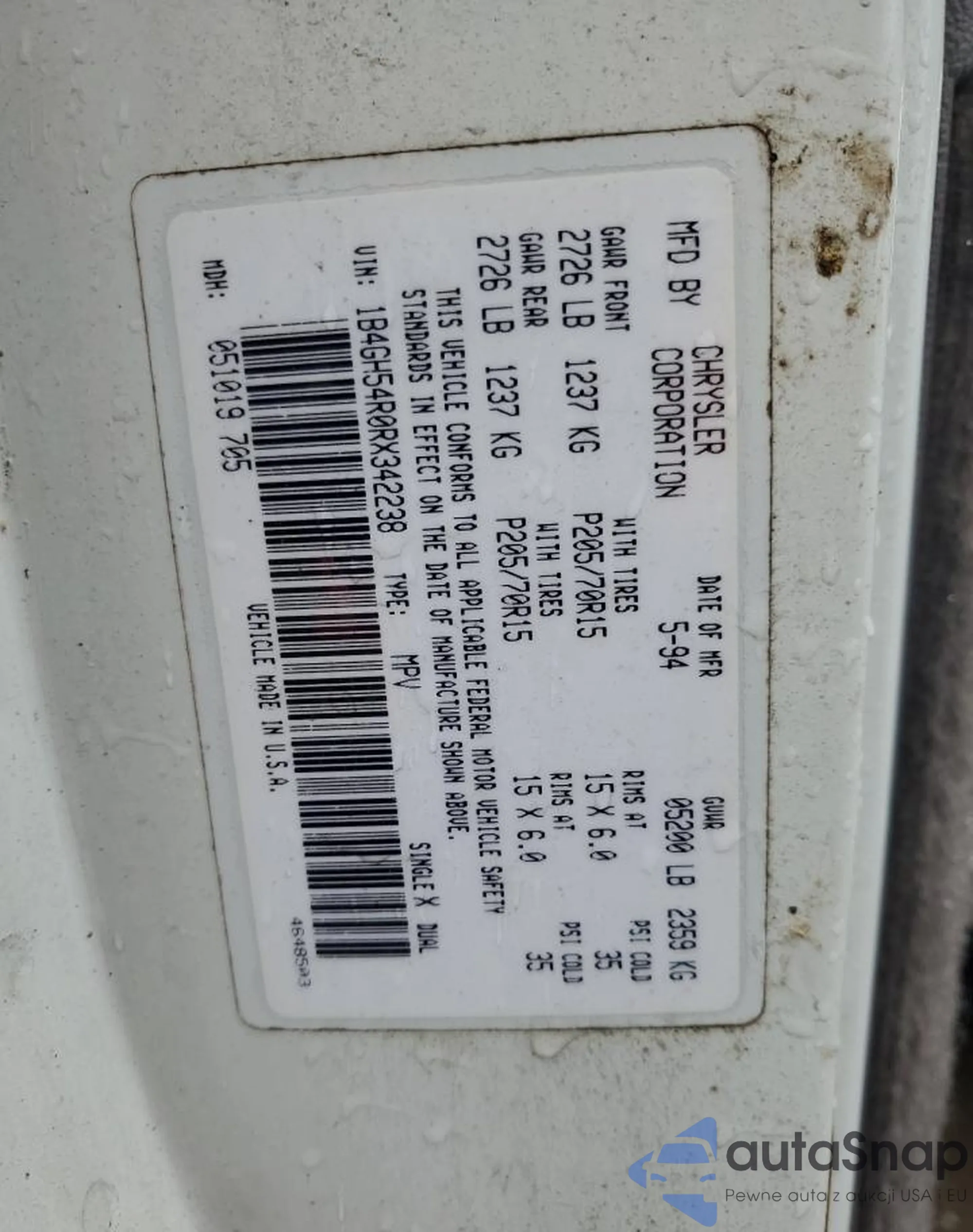 VIN: 1B4GH54R0RX342238