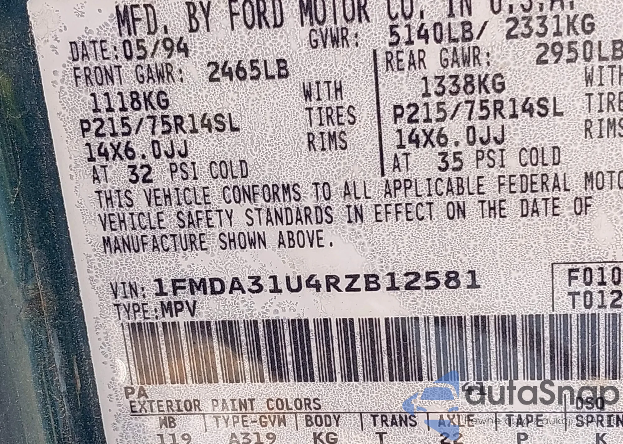 VIN: 1FMDA31U4RZB12581