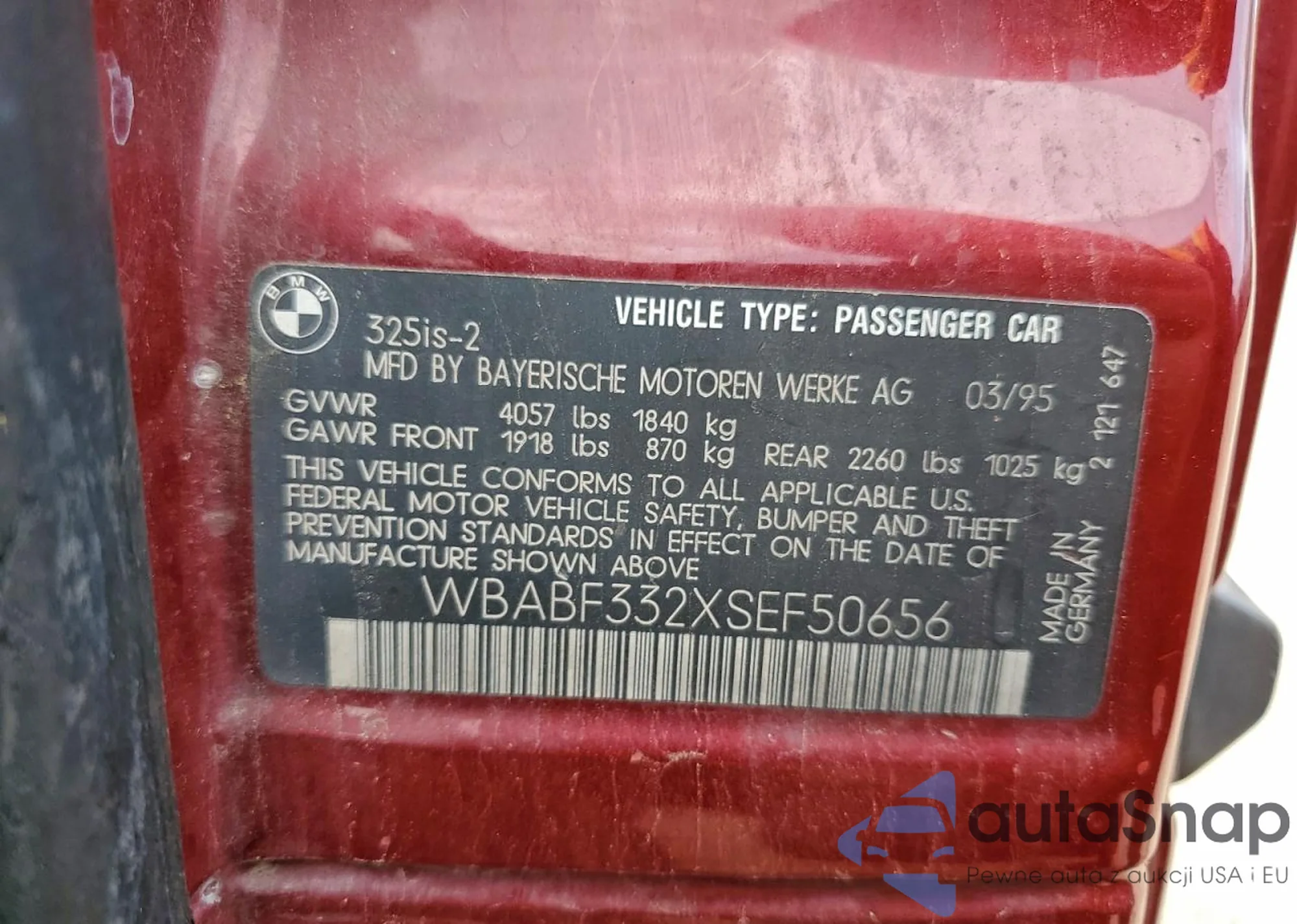 The car BMW 3er 1995 (VIN WBABF332XSEF50656) is sold by an unverified seller. We recommend checking the Carfax report and confirming registration possibilities before purchase.