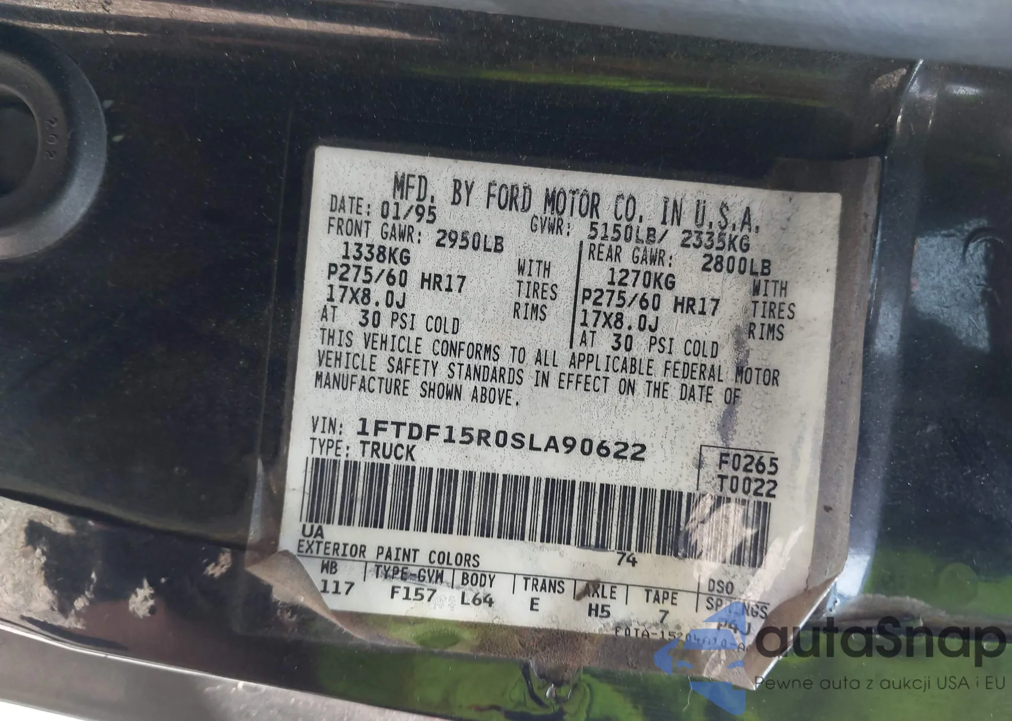 Ford F-150 1995 – Vehicle History (Sold at IAAI)