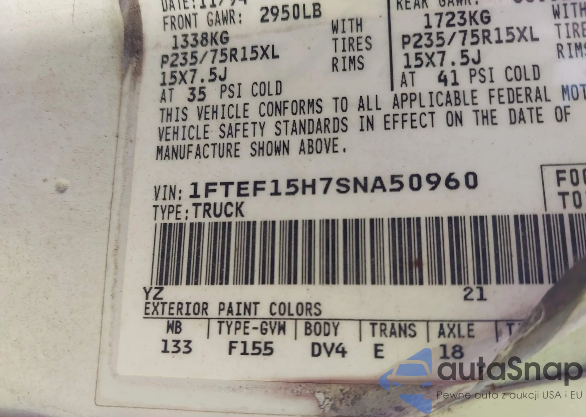 VIN: 1FTEF15H7SNA50960