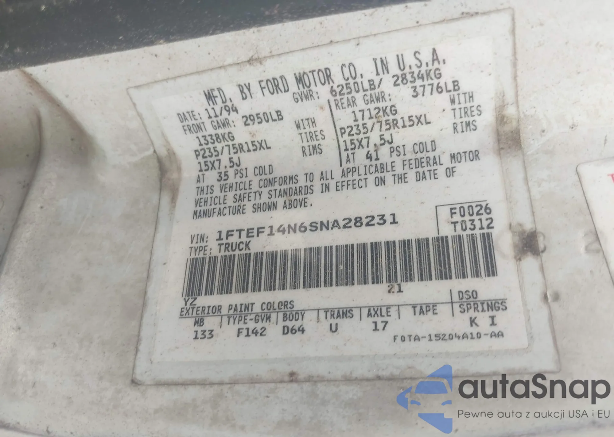 VIN: 1FTEF14N6SNA28231