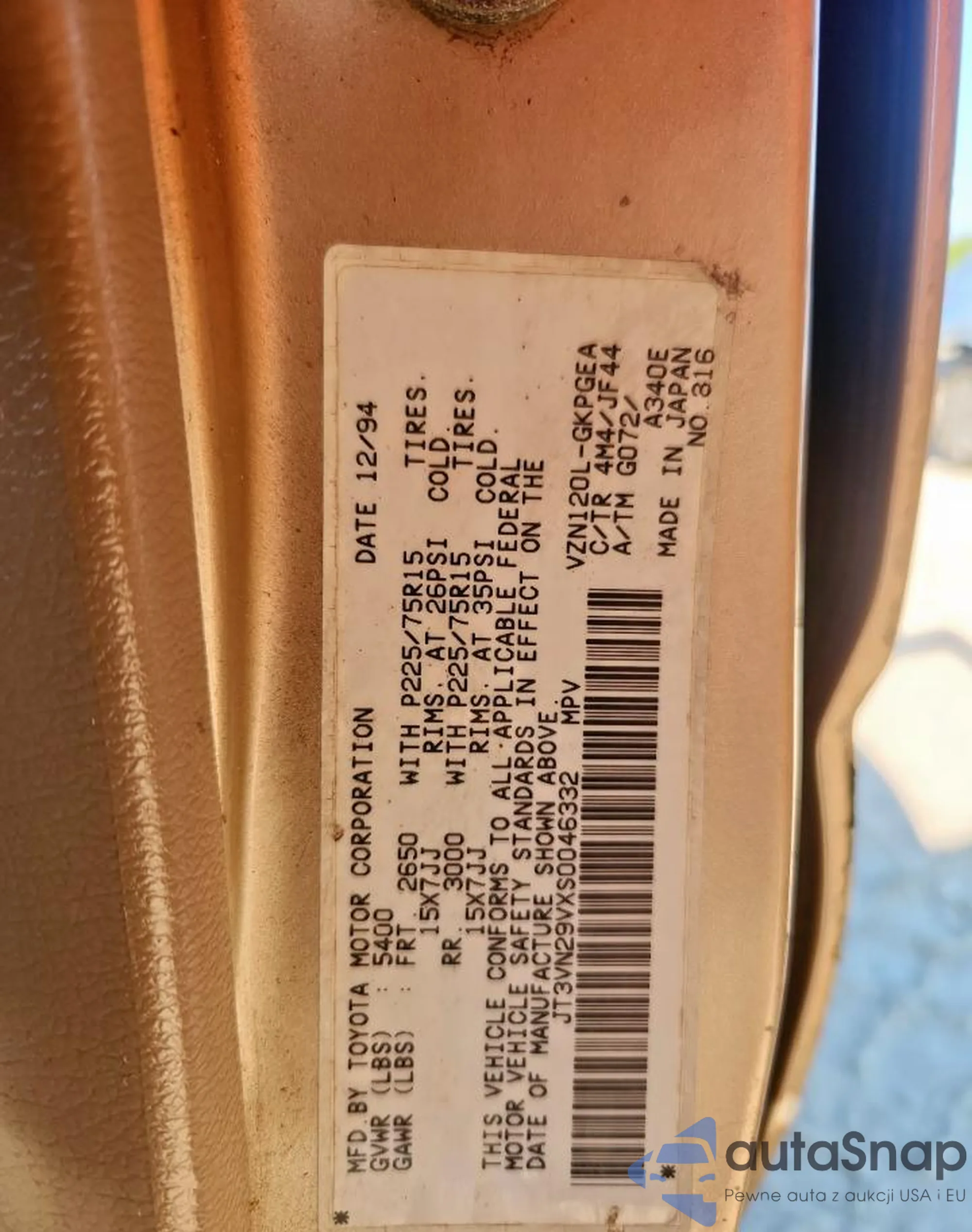 VIN: JT3VN29VXS0046332