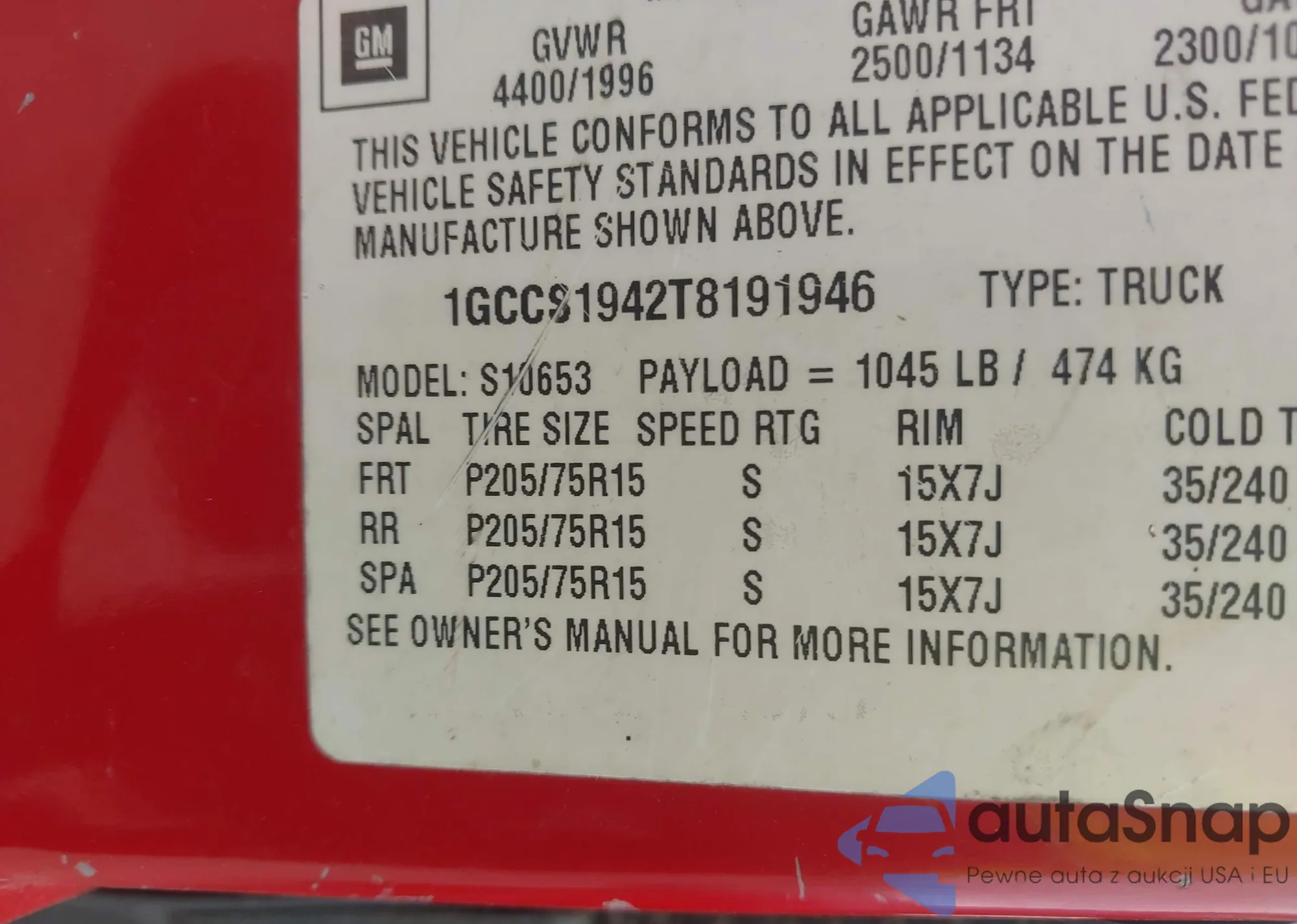 • VIN: 1GCCS1942T8191946