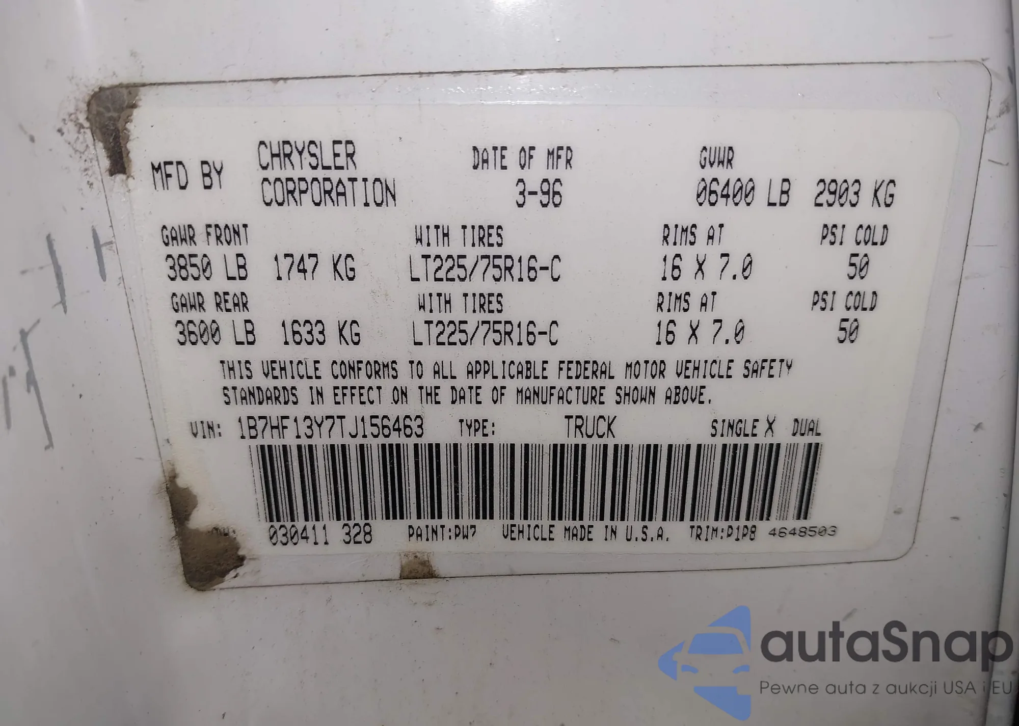 VIN: 1B7HF13Y7TJ156463