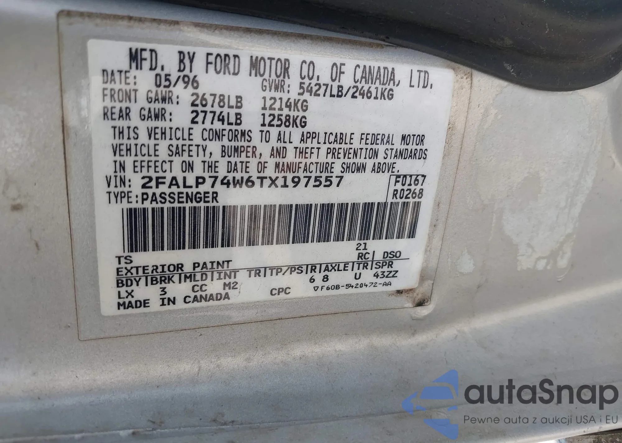 • VIN: 2FALP74W6TX197557