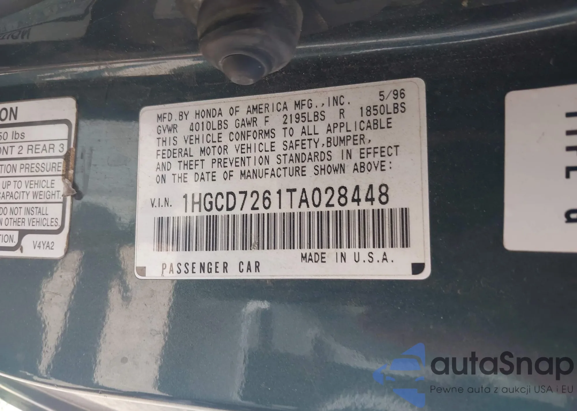The car Honda Accord 1996 (VIN 1HGCD7261TA028448) is sold by an unverified seller. We recommend checking the Carfax report and confirming registration possibilities before purchase.