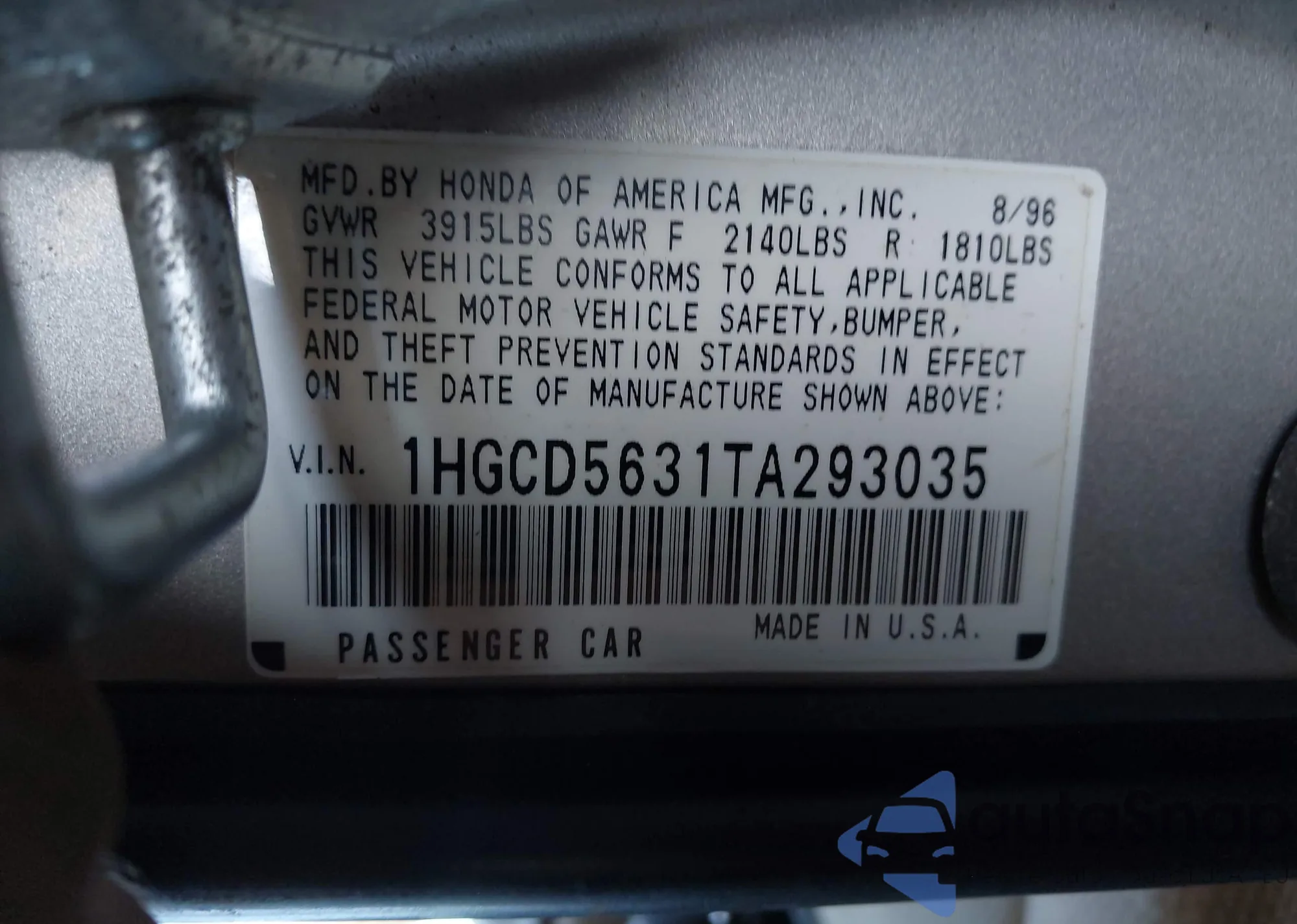 The car Honda Accord 1996 (VIN 1HGCD5631TA293035) has not been auctioned before. The documents are clean, and the mileage matches or is below the market average. Sold by an insurance company – we recommend purchase. Delivery to the port will take approx. 6–8 weeks.