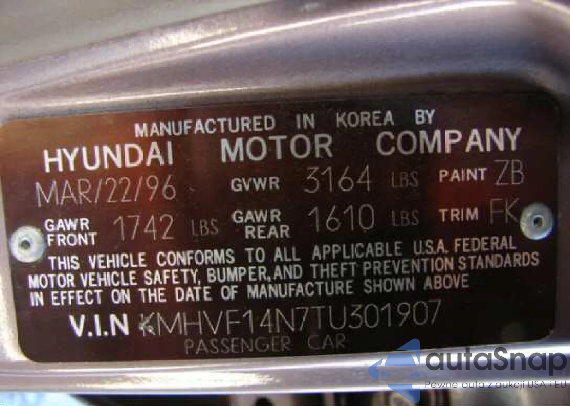 The car Hyundai Accent 1996 (VIN KMHVF14N7TU301907) has not been auctioned before. The documents are clean, and the mileage matches or is below the market average. Sold by an insurance company – we recommend purchase. Delivery to the port will take approx. 6–8 weeks.