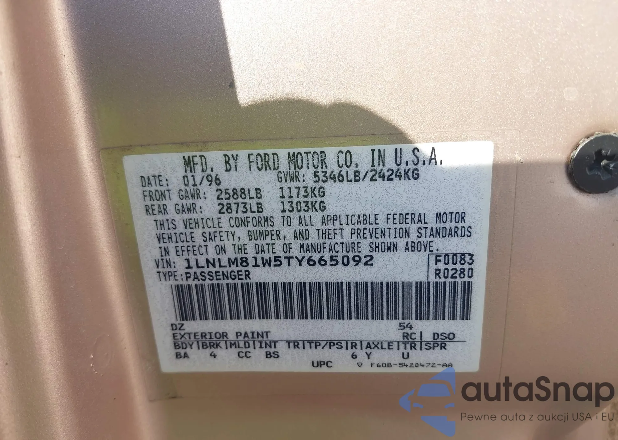 VIN: 1LNLM81W5TY665092