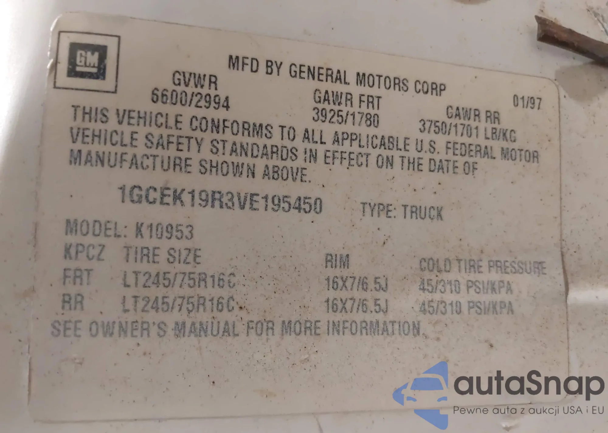 • VIN: 1GCEK19R3VE195450