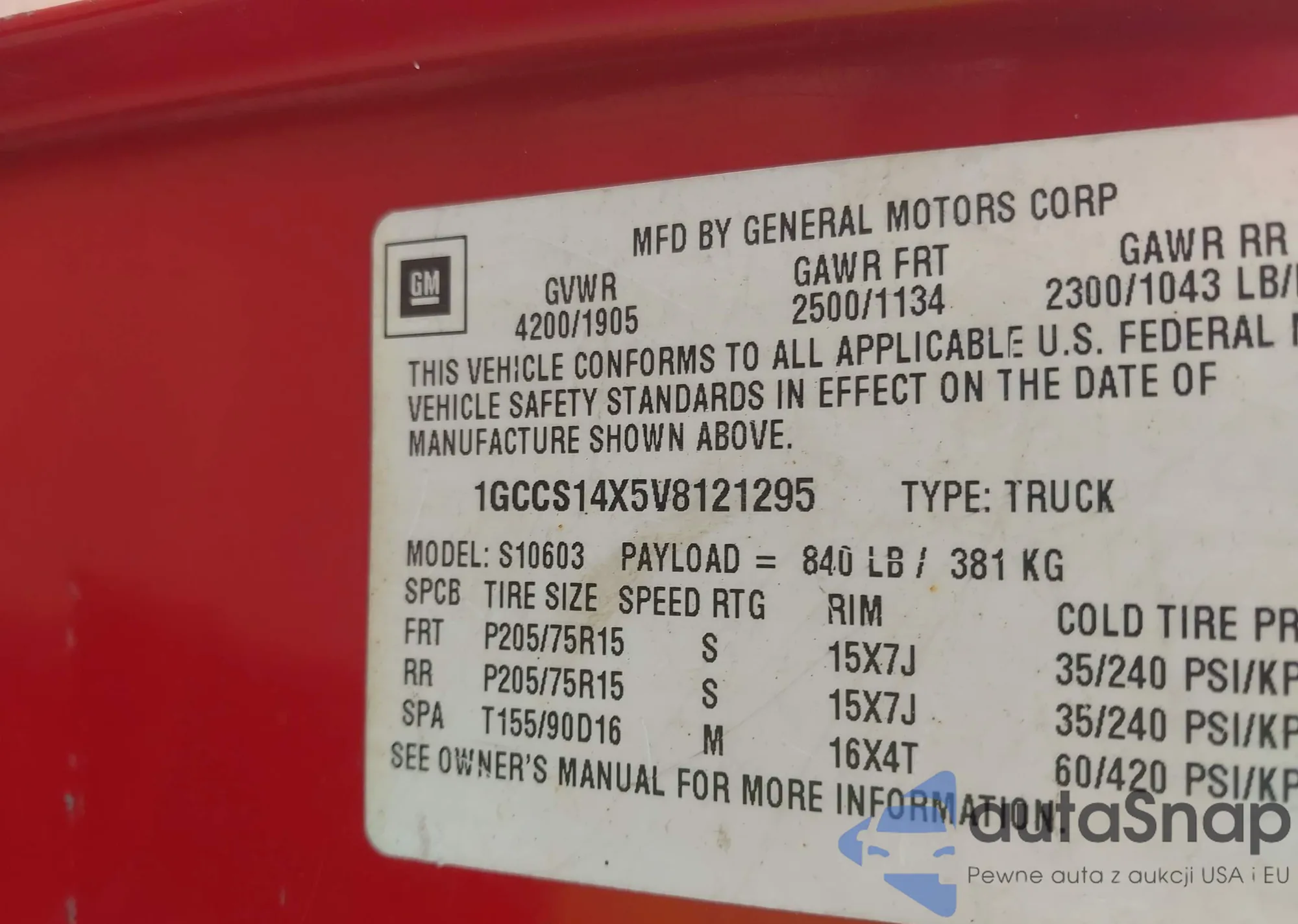 VIN: 1GCCS14X5V8121295