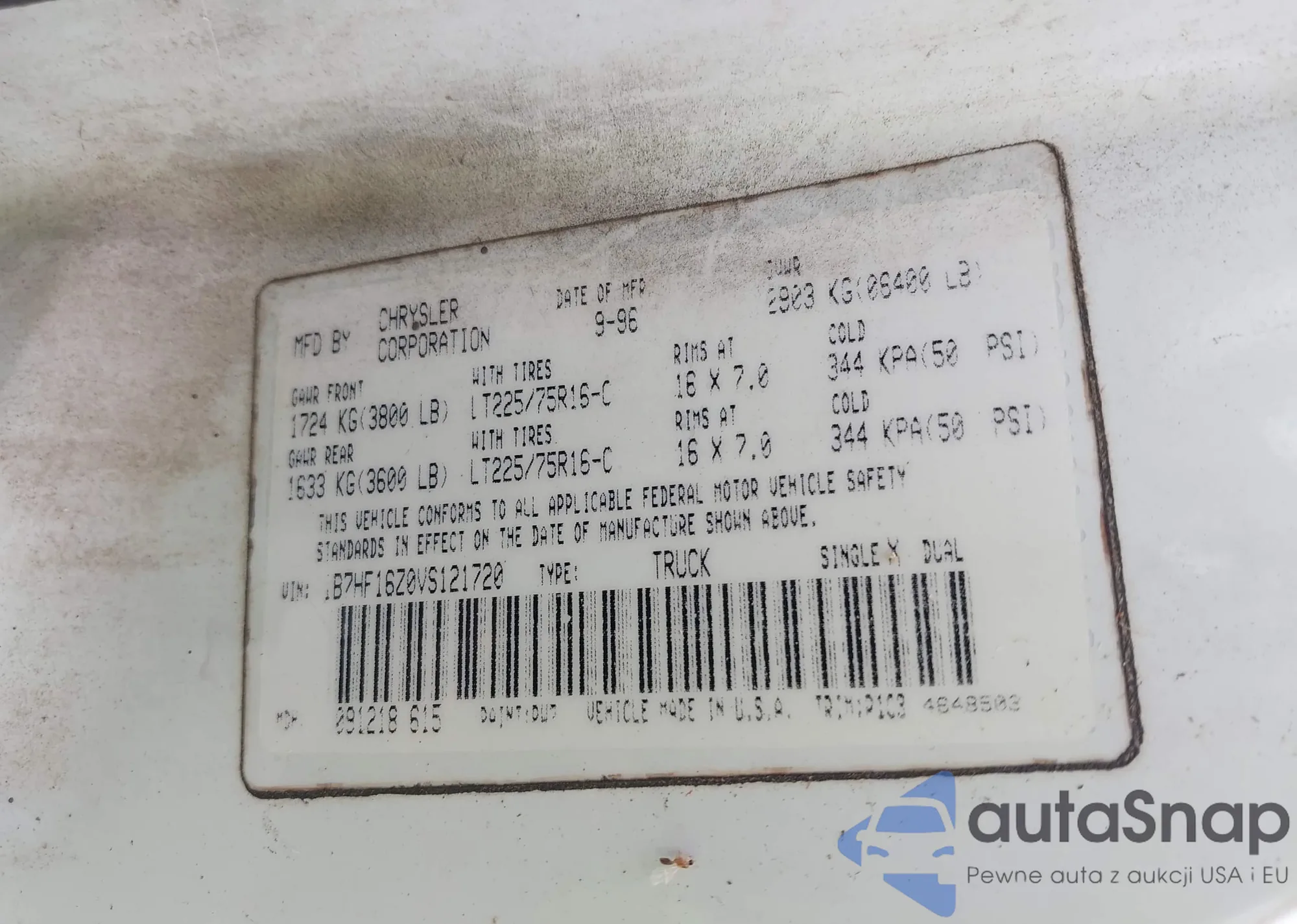 VIN: 1B7HF16Z0VS121720