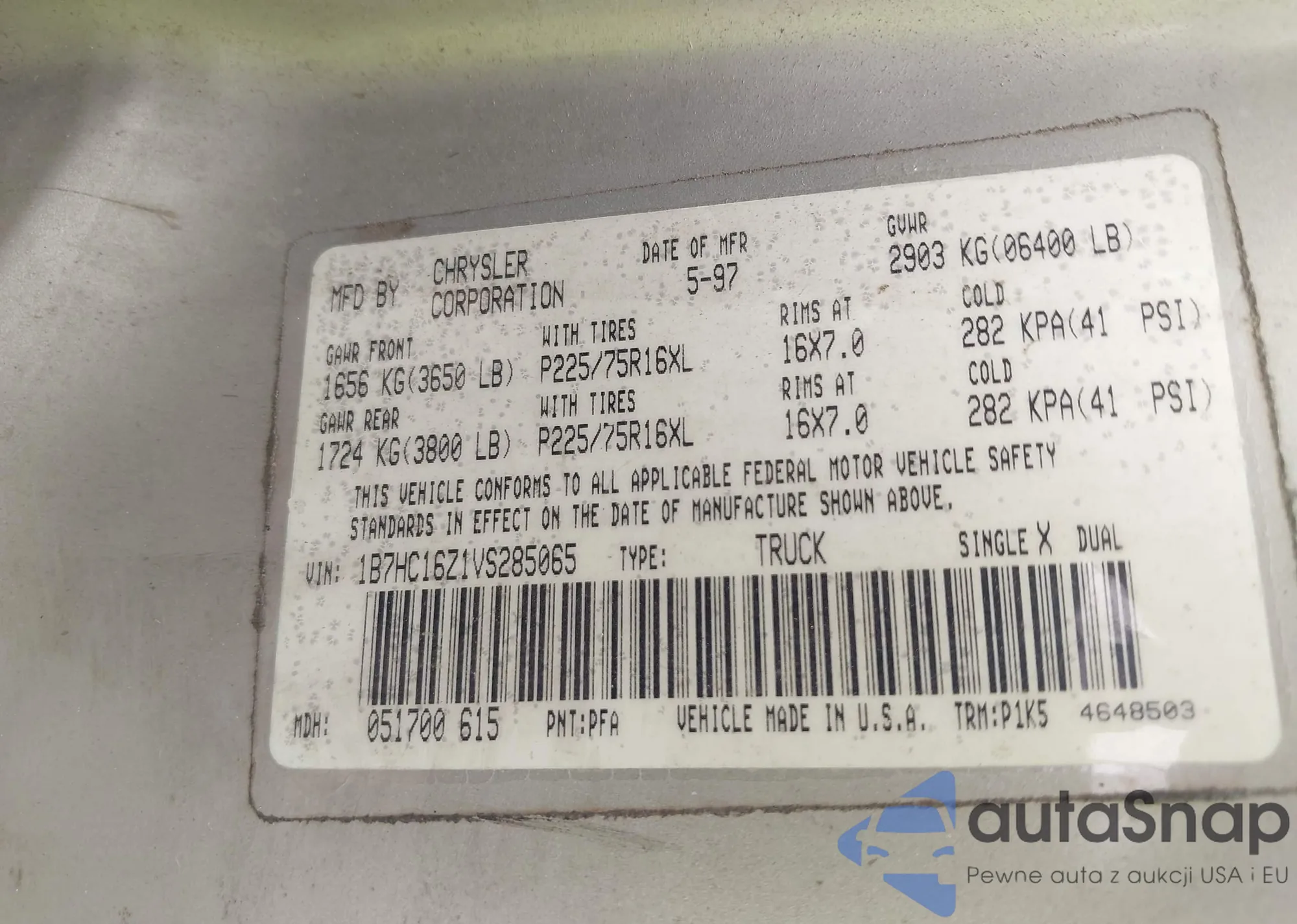 VIN: 1B7HC16Z1VS285065