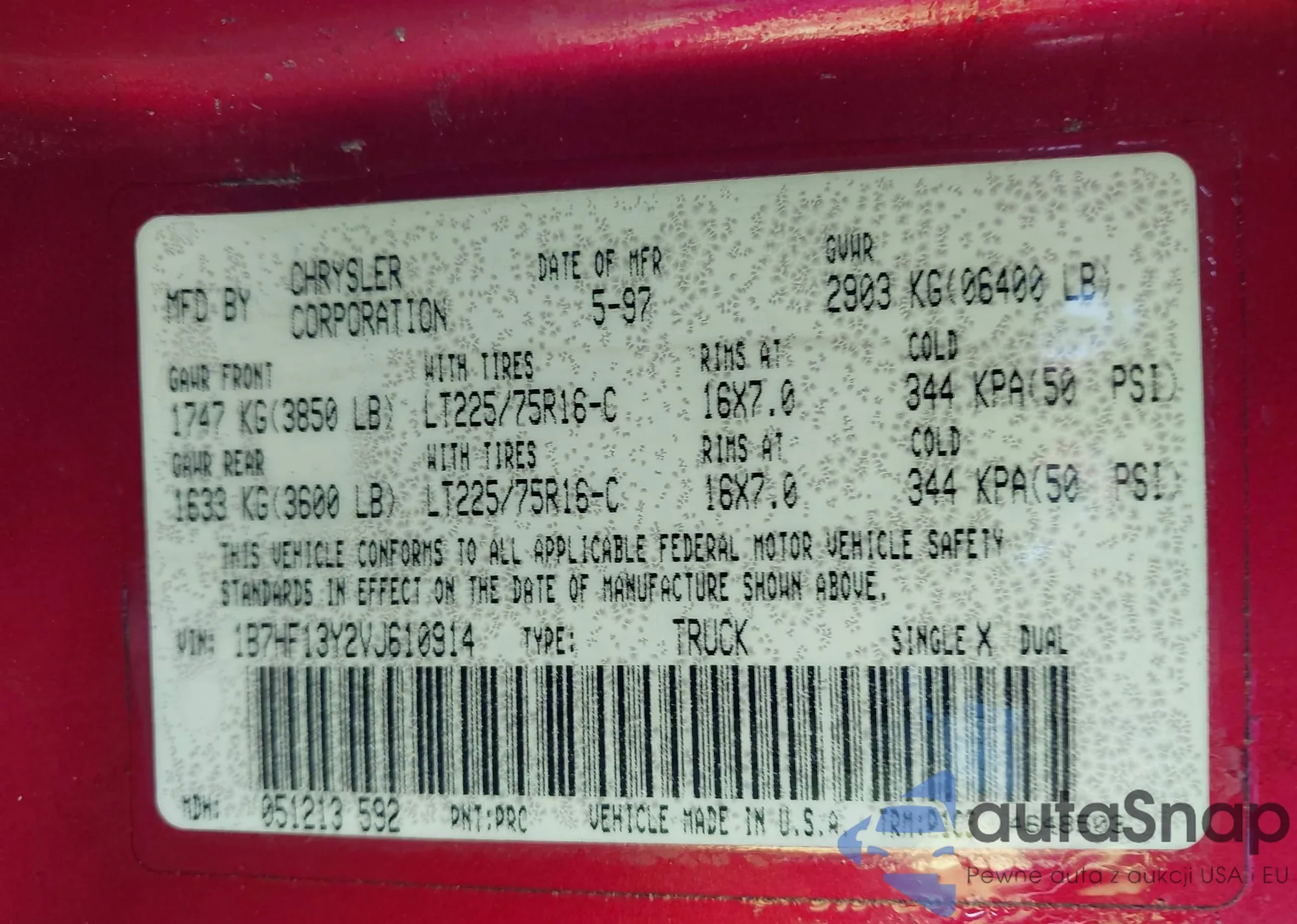 VIN: 1B7HF13Y2VJ610914