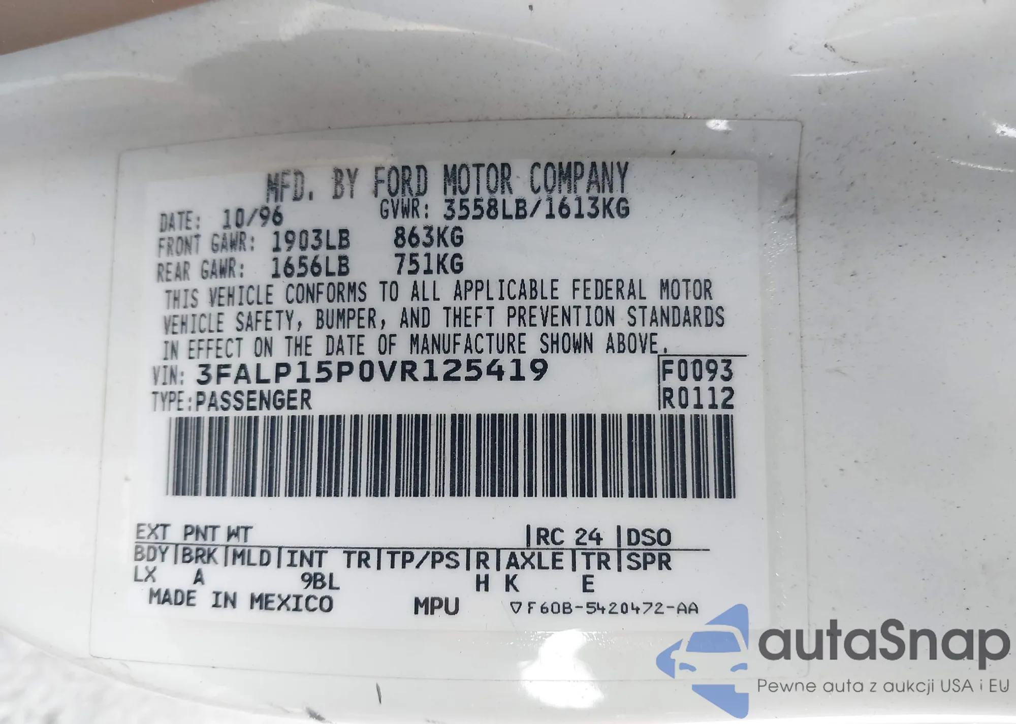VIN: 3FALP15POVR125419