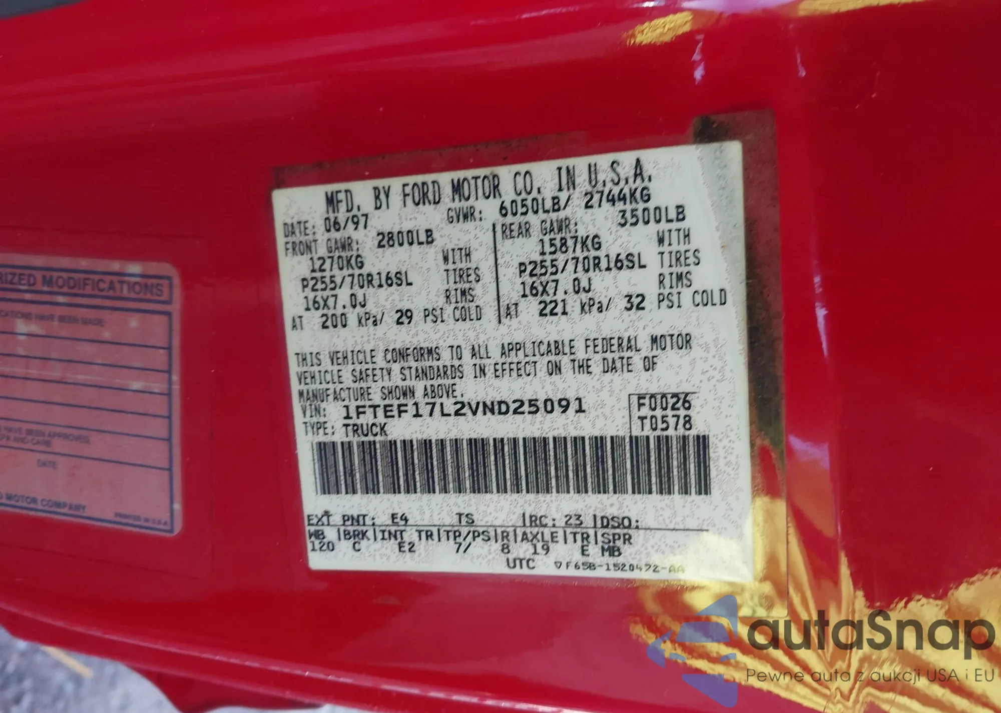 • VIN: 1FTEF17L2VND25091