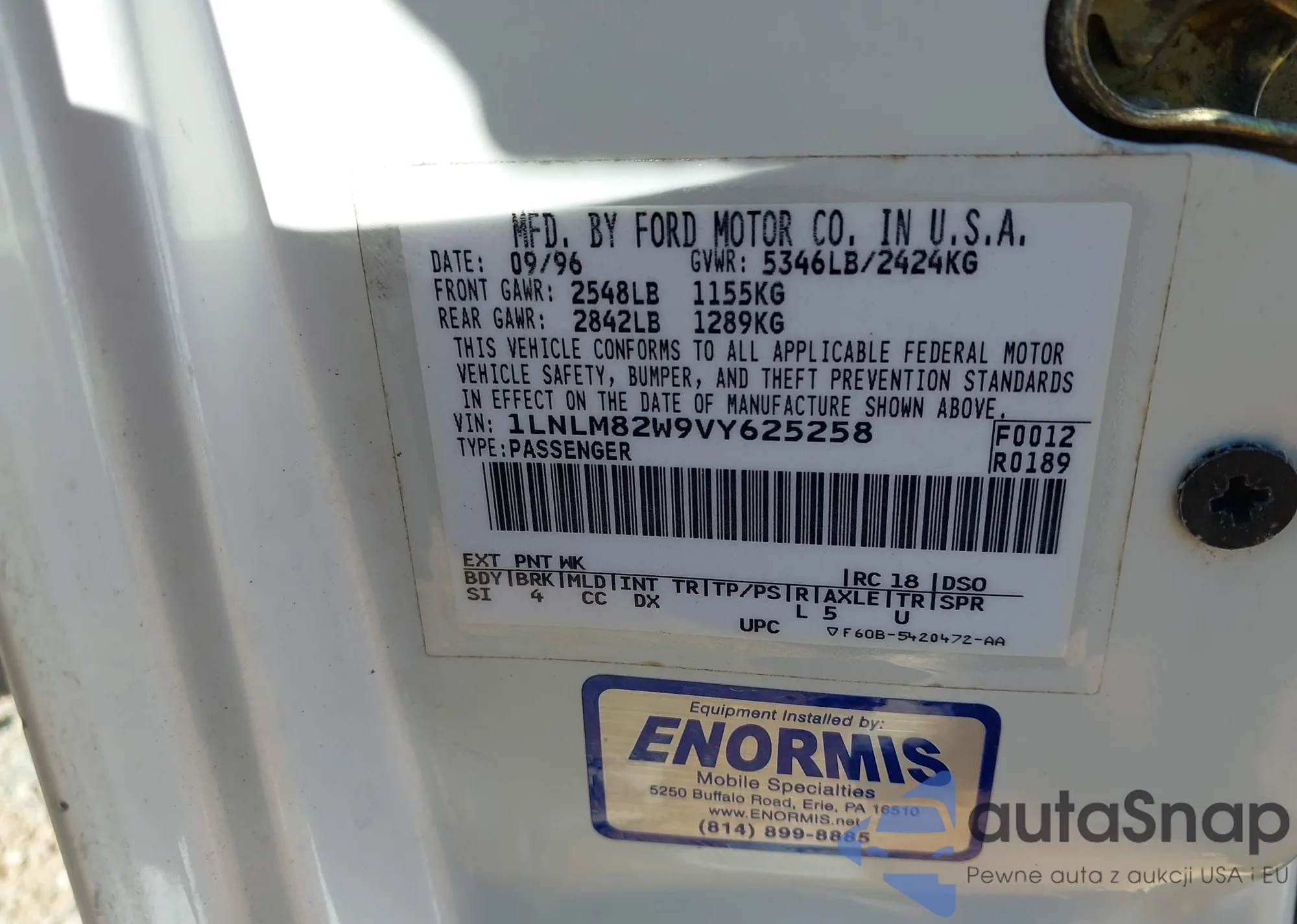 The car Lincoln Town Car 1997 (VIN 1LNLM82W9VY625258) has documents that prevent registration. Export and registration may be difficult. Contact AutaSnap experts to find alternatives.