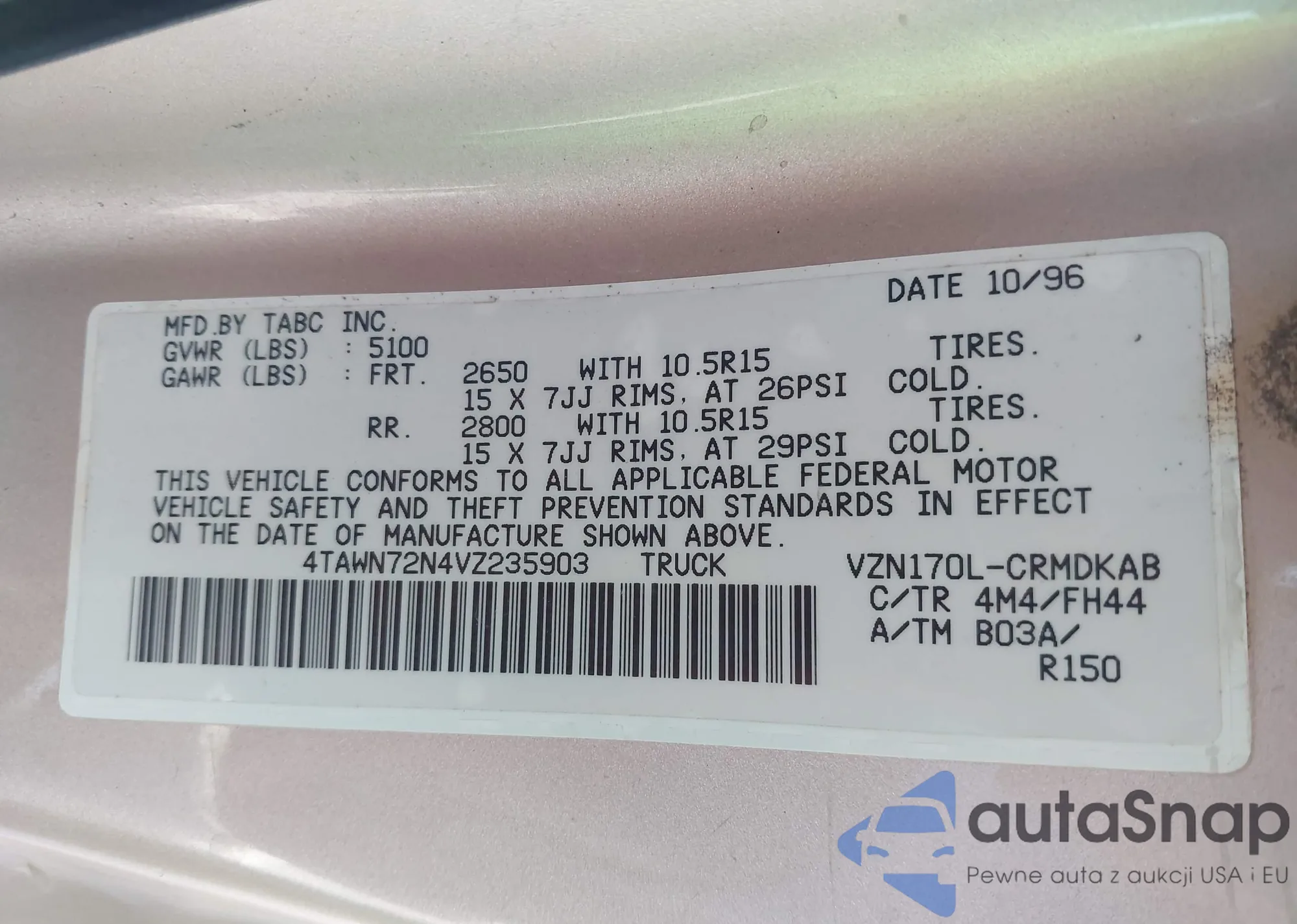 VIN: 4TAWN72N4VZ235903