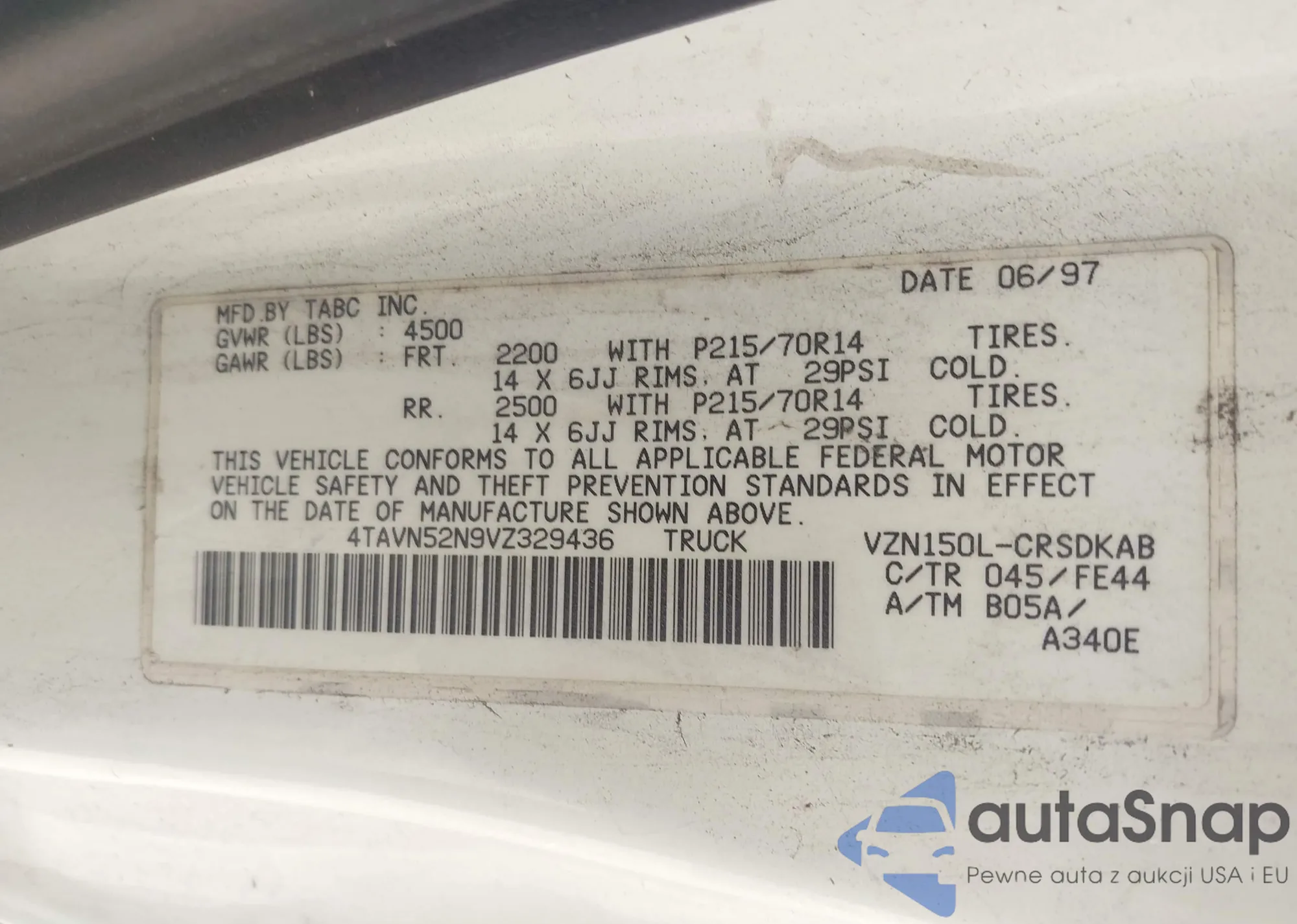 VIN: 4TAVN52N9VZ329436