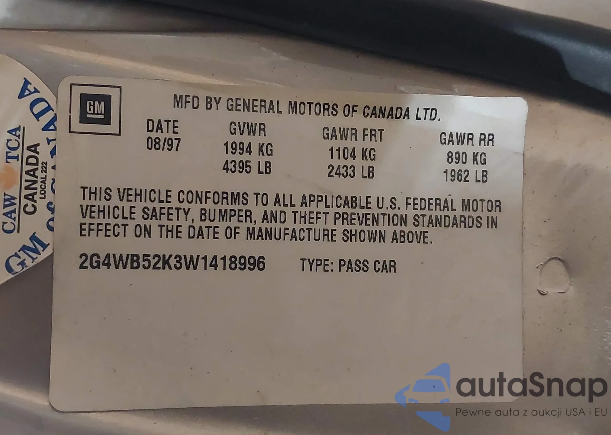 VIN: 2G4WB52K3W1418996